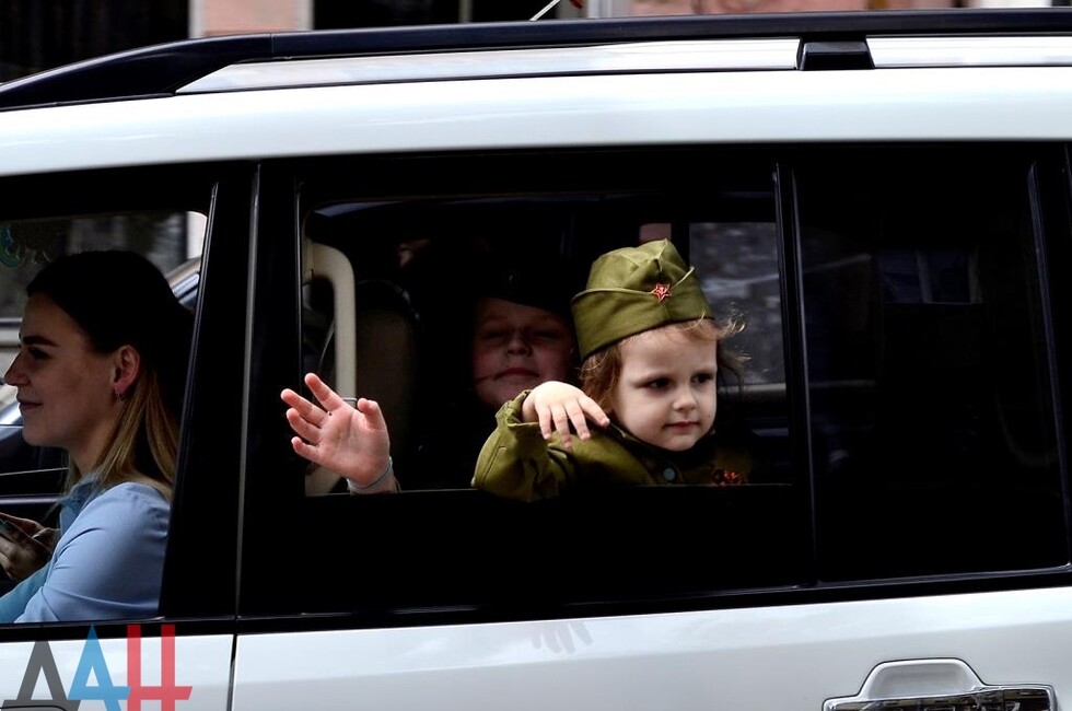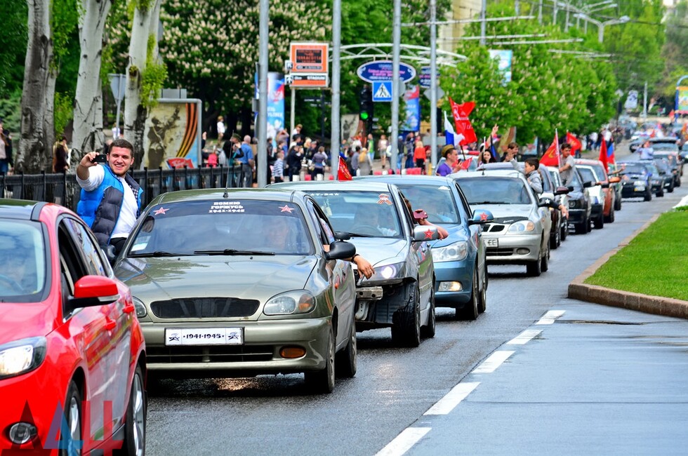 Донецк, 9 мая - ДАН. Автопробег в честь 71-й годовщины Великой Победы собрал в центре Донецка несколько сотен автомобилей. Водители из разных городов ДНР проехались по центральной улице столицы – улице Артема, передает корр. ДАН.