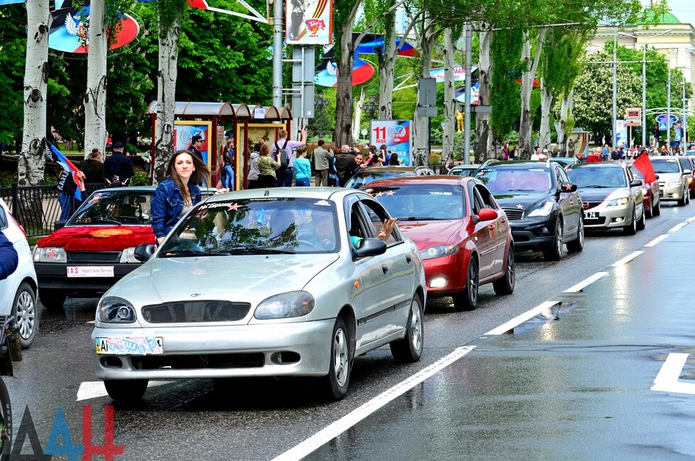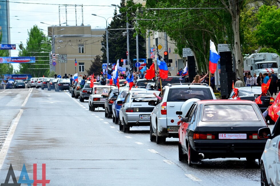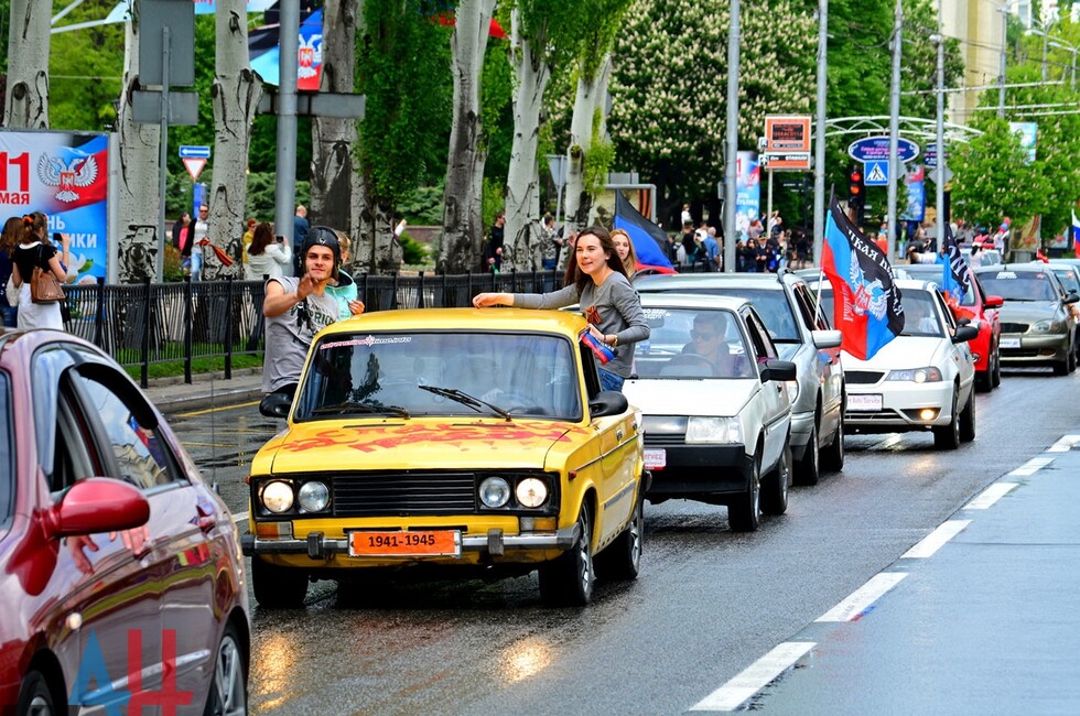 В пробеге приняли участие авто различных моделей – по оценке корреспондента, около 400 машин, - были и мотоциклисты. Водители автомобилей, многие из которых были украшены флагами ДНР, СССР и России, приветствовали прохожих звуковыми сигналами.