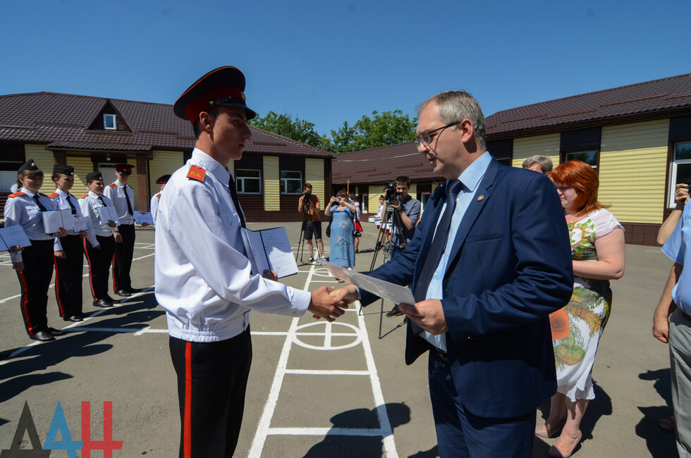 Донецк, 27 июн – корр. ДАН. Торжественная церемония завершения обучения прошла сегодня в Школе №4 – Кадетского корпуса имени Александра Захарченко. Выпускниками стали 18 воспитанников учреждения.