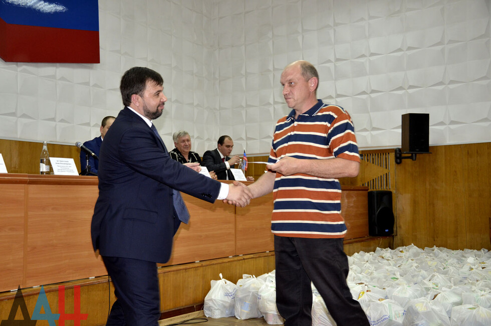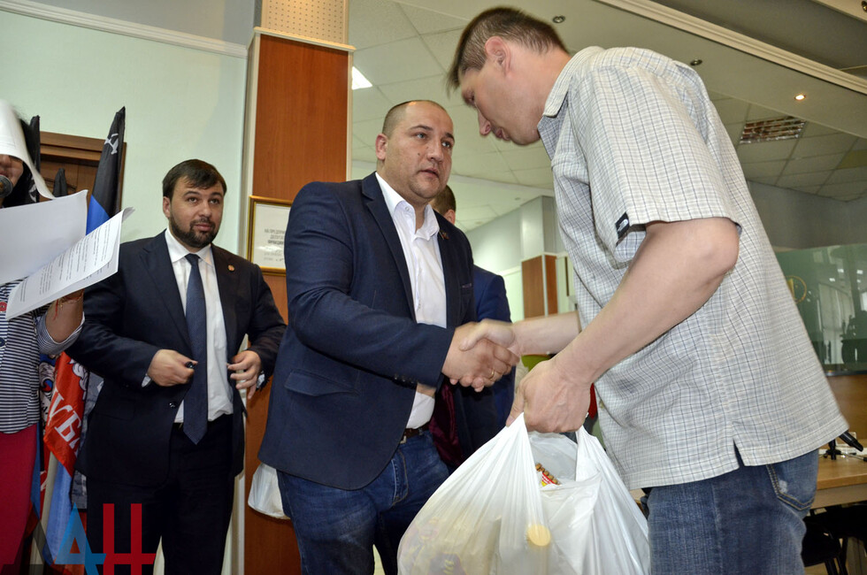 «Сегодня мы привезли гуманитарную помощь, чтобы поддержать новых членов нашего движения. Они являются сотрудниками предприятий, где было введено внешнее управление. Там ситуация непростая – сейчас идет переходный период, а потому участники «Донецкой Республики» считают своим долгом оказать поддержку людям», – сказал журналистам Пушилин.