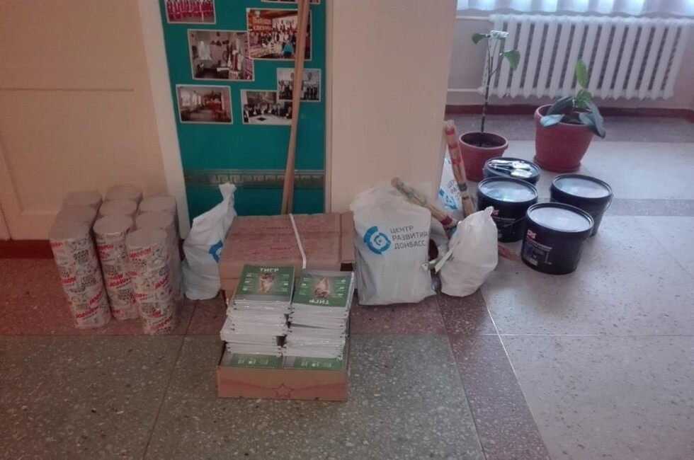 Первую остановку сделали в детсаду № 354 в Киевском районе столицы ДНР. На пороге гостей встретила детвора и педагоги. Детсаду передали канцелярские принадлежности, бытовую химию, краску и прочее.