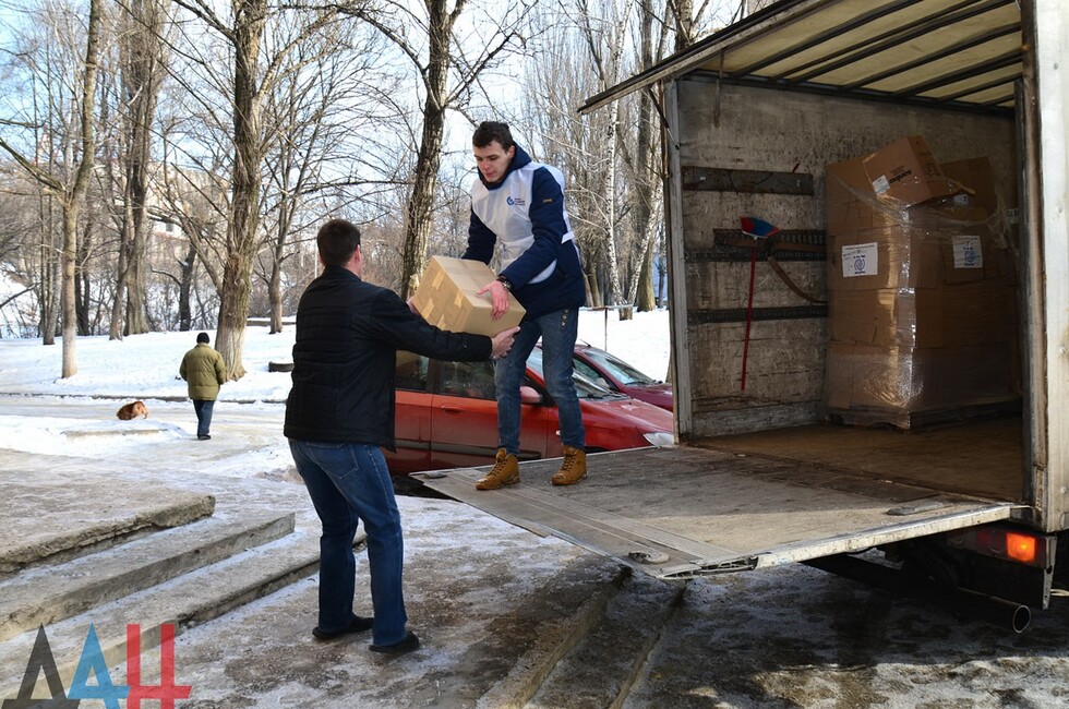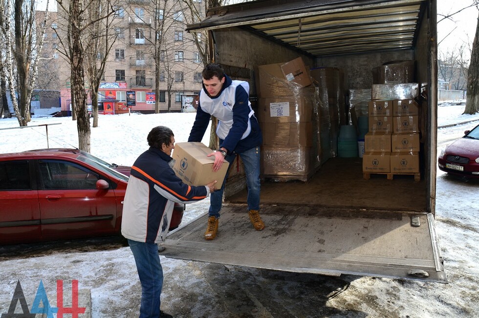 "Мы привезли помощь эвакуированным людям, продовольственные (гречка, сахар, соль, масло, сардины и фасоль) и гигиенические наборы, всего их получат 75 человек. Это люди, которые вынуждены были переехать из прифронтовых районов Донецка, а именно Куйбышевского и Киевского районов», - рассказала журналистам председатель ЦРД Анастасия Хмельницкая.