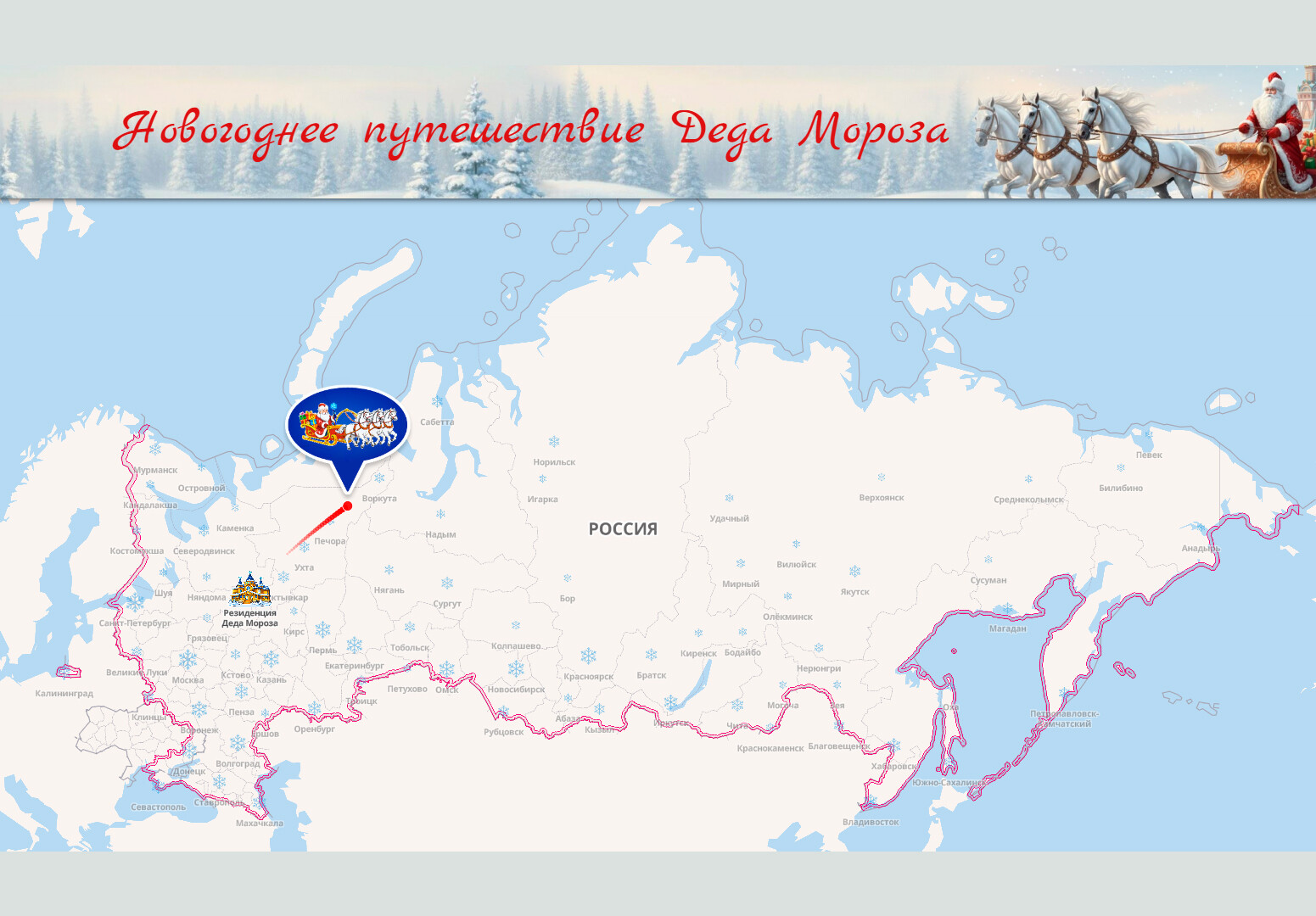 Донецк, 31 дек — ДАН. Волшебные сани Деда Мороза 31 декабря отправляются в путешествие через все 11 часовых поясов России. Его маршрут в реальном времени можно отслеживать на специальной интерактивной карте, размещенной на платформе Росавиации.