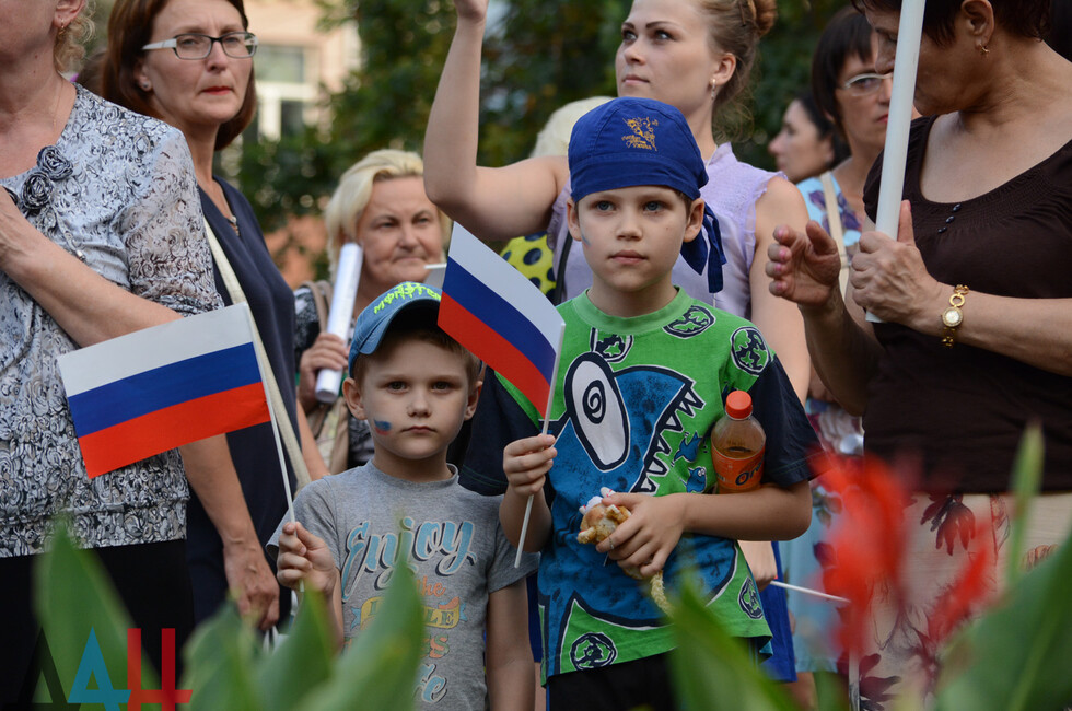 Донецк, 22 авг – корр. ДАН. Праздничный митинг по случаю Дня Государственного флага России состоялся сегодня в Донецке. Мероприятие прошло в сквере Первомайский и собрало порядка тысячи человек.