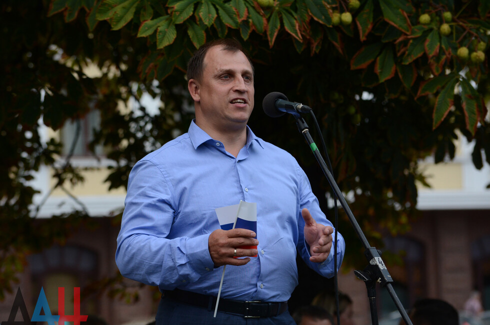 «Российский триколор сыграл в нашей жизни большую роль. Именно российский флаг стал символом единства, братства и свободы, и мы гордимся этим флагом», - обратился к присутствующим председатель Народного Совета ДНР Владимир Бидёвка.