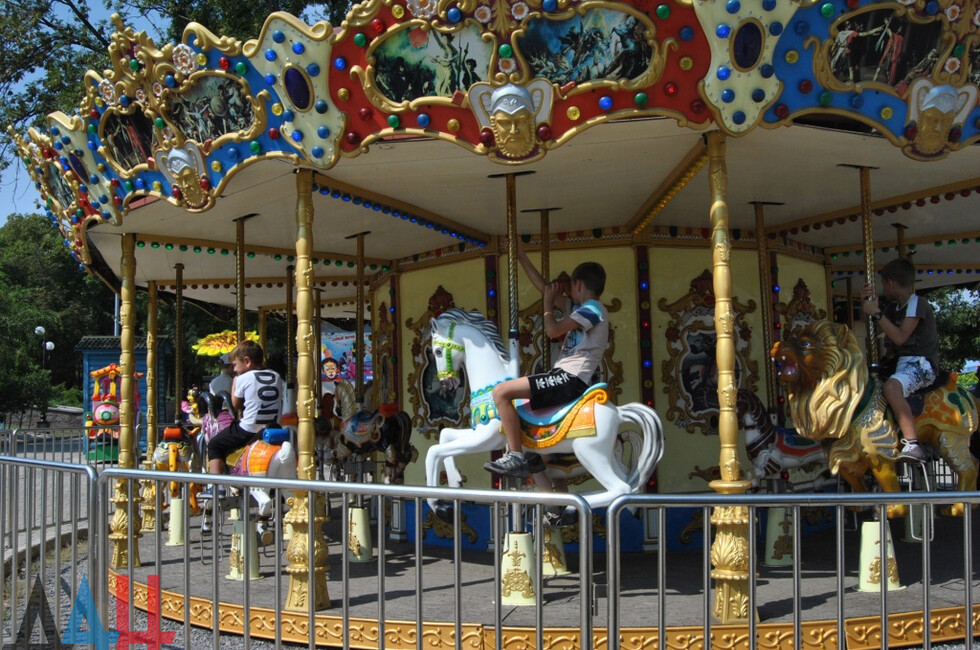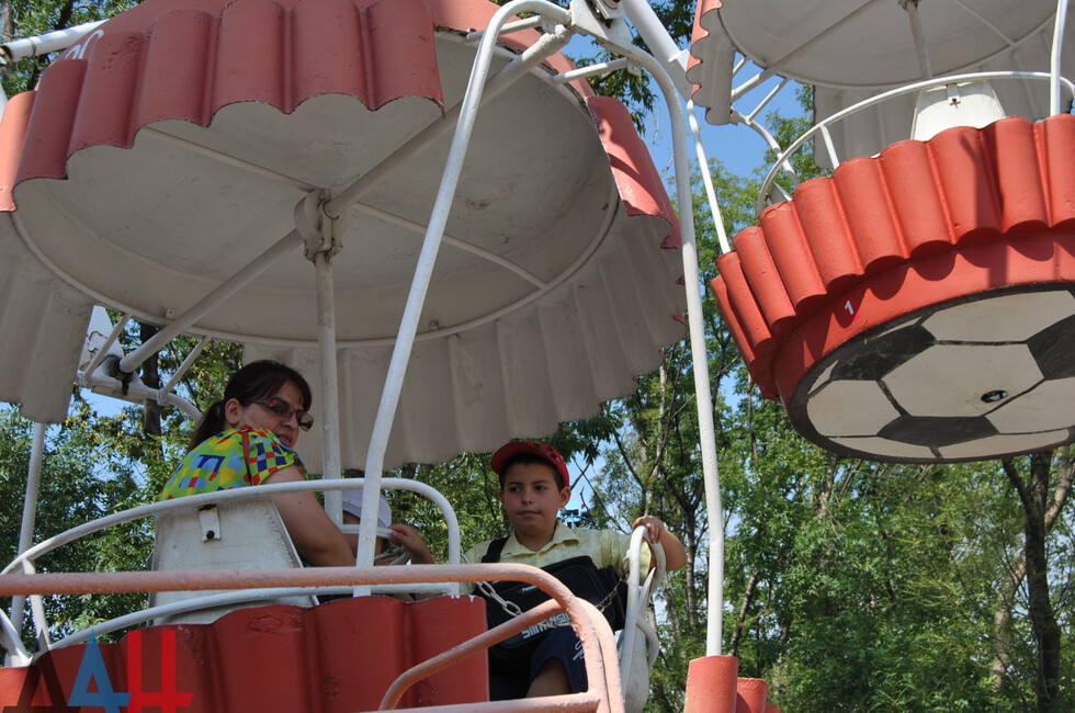 В парке побывали 70 детей и родителей. Ребята полакомились мороженным, катались на колесе обозревания, «американских» горках, автодроме. Кроме того, юные дончане посетили веревочный парк «Лень в пень».