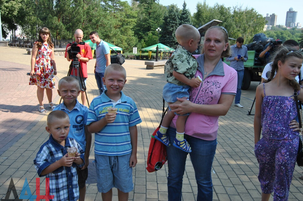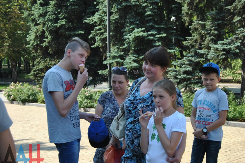 Донецк, 28 авг – ДАН. Сладкие угощения и аттракционы ждали сегодня детей из многодетных семей Калининского района Донецка. В преддверии учебного года поход в центральный парк культуры и отдыха имени Щербакова ребятам устроили руководитель фракции Народного Совета «Донецкая Республика» Александр Костенко и депутат Юрий Мартынов.