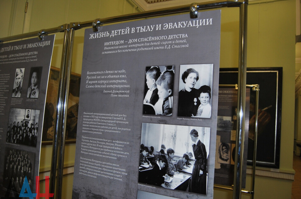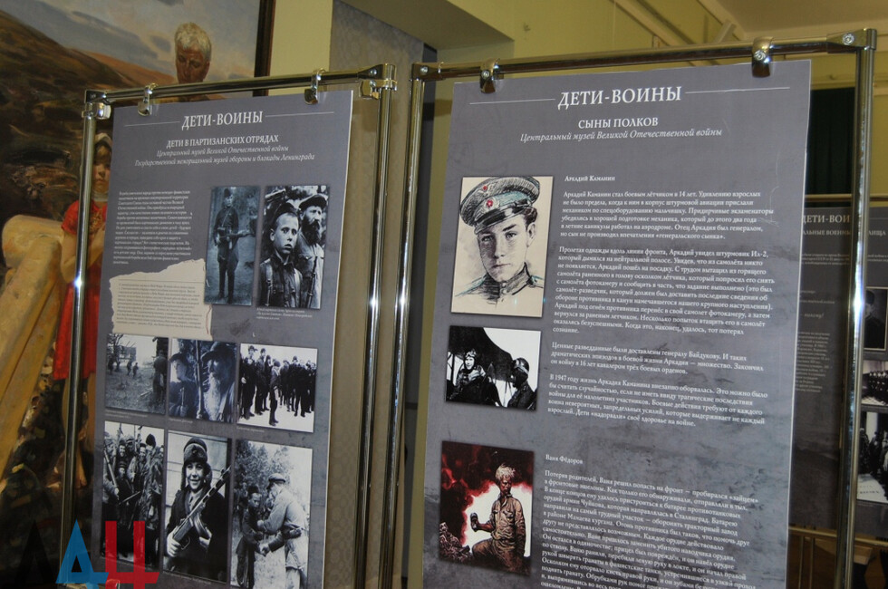 «Эта экспозиция развернута в рамках программы сотрудничества музеев Донецка и Москвы. На выставочных стендах представлены фотоснимки, справки, протоколы, листовки свидетельства и рассказы очевидцев. Посетители могут ознакомиться с рассказами о судьбах детей-воинов, пионеров-героев, детей, переживших блокаду», – сказала корр. ДАН директор музея Надежда Анищенко.