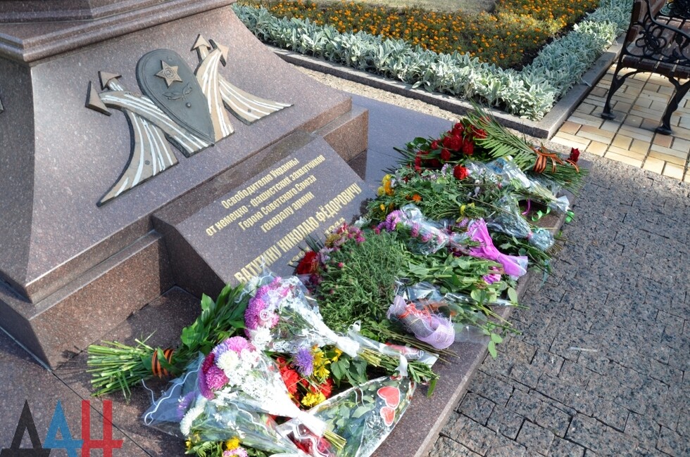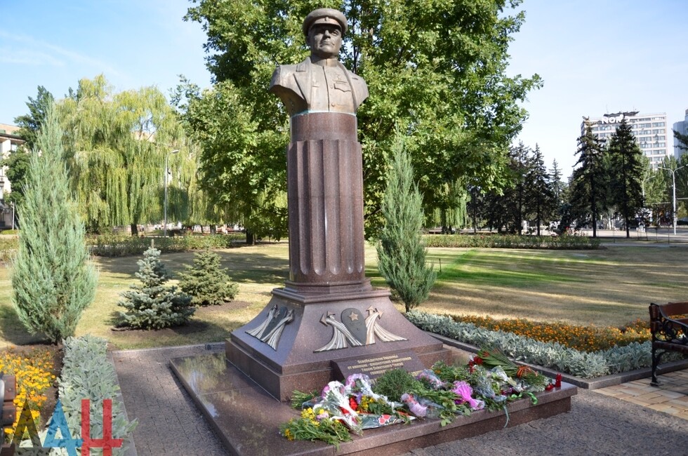 Донецк, 7 сен – корр. ДАН. Жители Донецка сегодня, в канун празднования Дня освобождения Донбасса (8 сентября), возложили цветы к памятникам легендарным советским полководцам, принимавшим участие в освободительной операции 1943 года. Мероприятия прошли в центре столицы ДНР и собрали порядка 300 участников.
