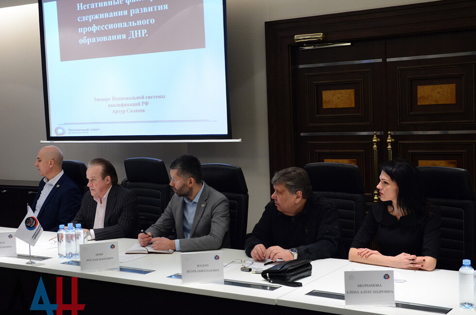 В обсуждении участвовали члены Правительства ДНР, депутаты Народного Совета, представители актива ОД «Донецкая Республика», сотрудники предприятий и профсоюзные деятели. О целях проекта рассказал один из его авторов, эксперт Национальной системы квалификаций (НСК) РФ Артур Салахов.
