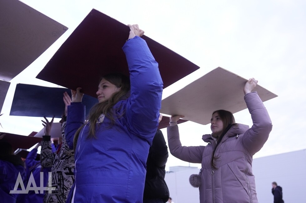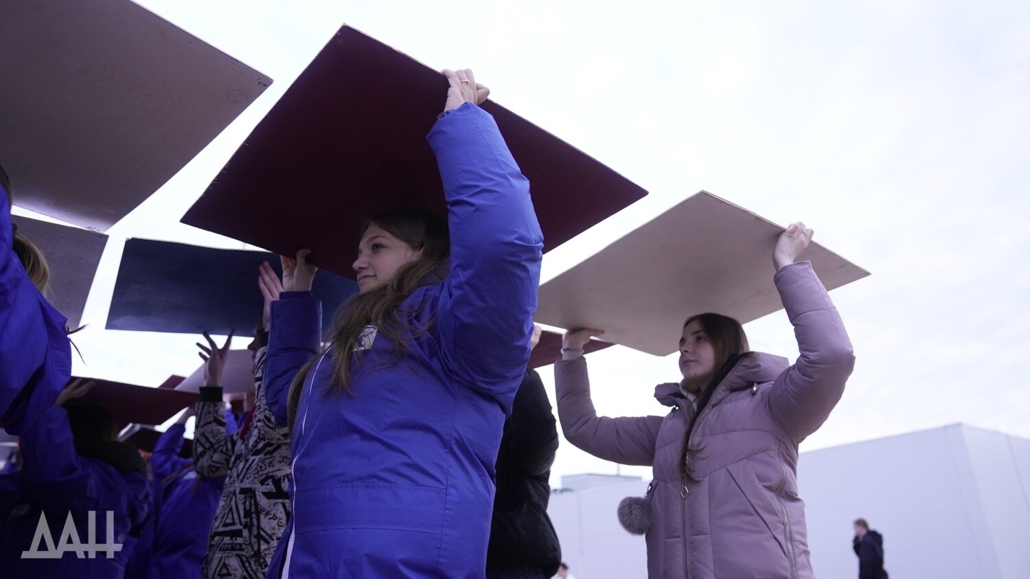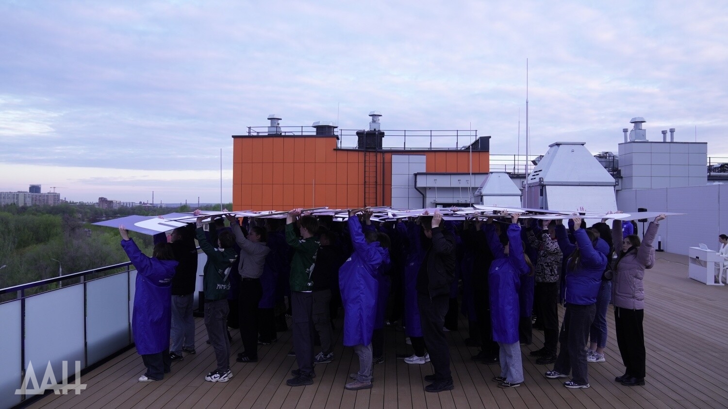 Донецк, 23 апр — ДАН. Порядка 120 активистов «Молодой Гвардии» ДНР выстроили масштабный портрет Сергея Прокофьева на крыше Дома молодежи «30/09». На месте побывал корр. Донецкого агентства новостей.