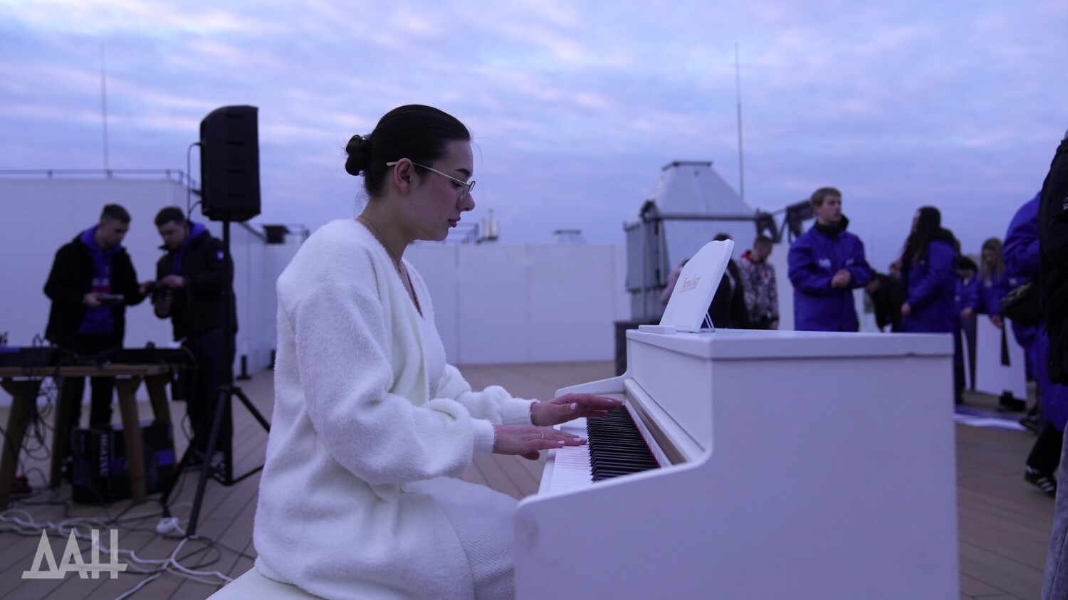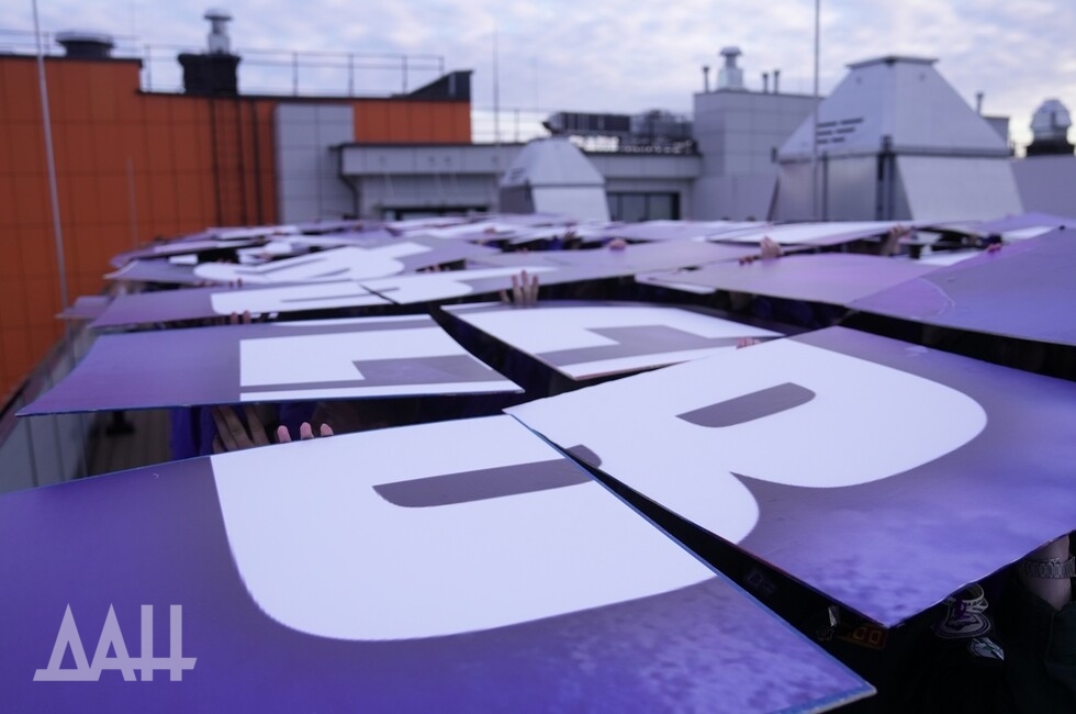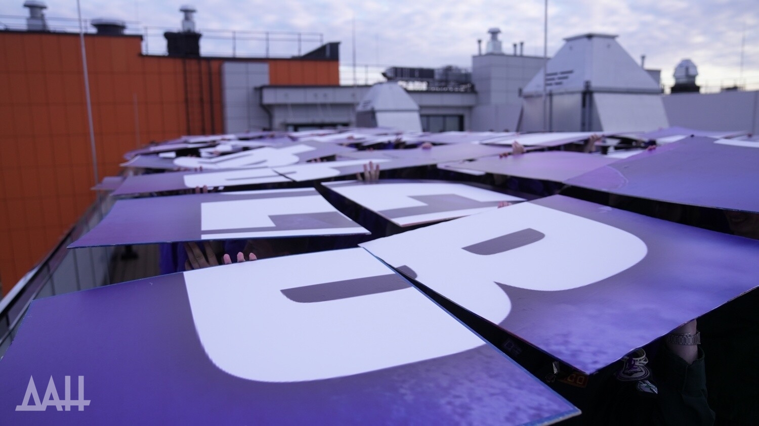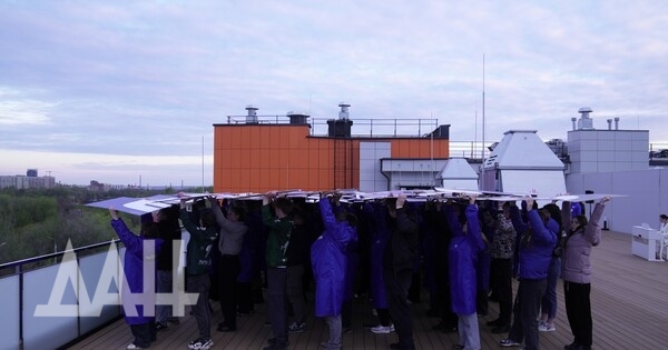 Донецк, 23 апр — ДАН. Порядка 120 активистов «Молодой Гвардии» ДНР выстроили масштабный портрет Сергея Прокофьева на крыше Дома молодежи «30/09». На месте побывал корр. Донецкого агентства новостей.
