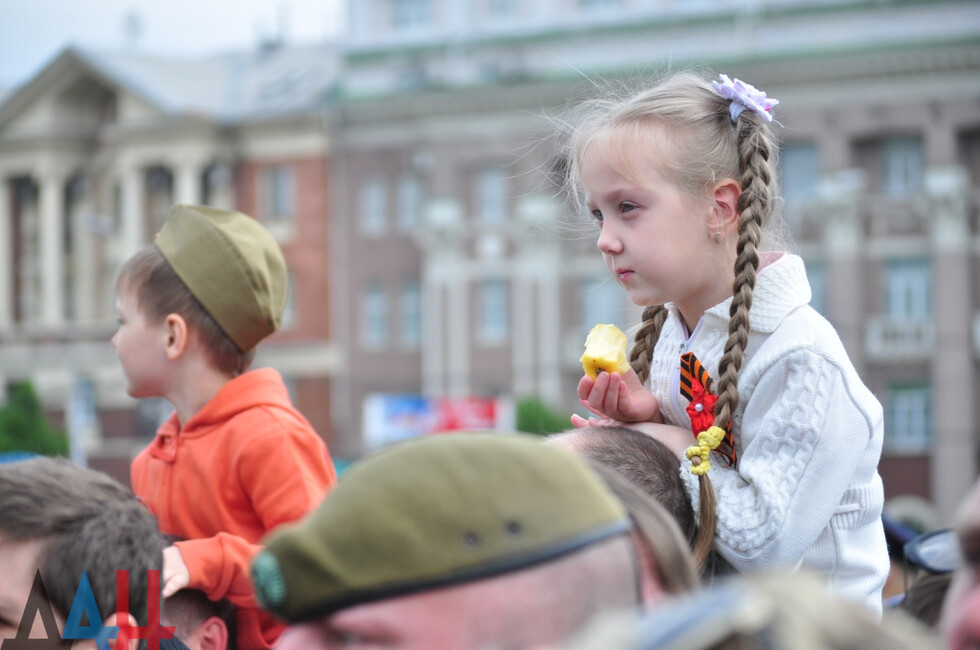 Донецк, 9 мая – корр. ДАН. Десятки тысяч жителей Донбасса собрались сегодня в центре Донецка отпраздновать 73-ю годовщину Победы советского народа над нацистской Германией. Ветераны Великой Отечественной войны и военнослужащие Донецкой Народной Республики с семьями пришли почтить память павших за Родину в 1941-1945 годах.