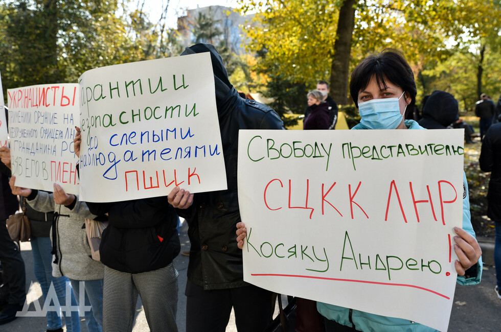 "Наша акция у штаб-квартиры Специальной мониторинговой миссии ОБСЕ в Донецке - бессрочная. Она будет продолжаться, пока украинская власть не выполнит наше главное требование - освободить Андрея Косяка", - отметил в беседе с корр. ДАН координатор общественного протеста Сергей.