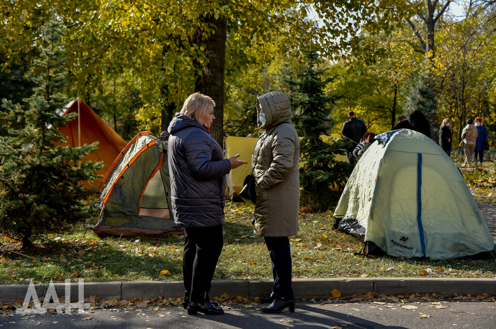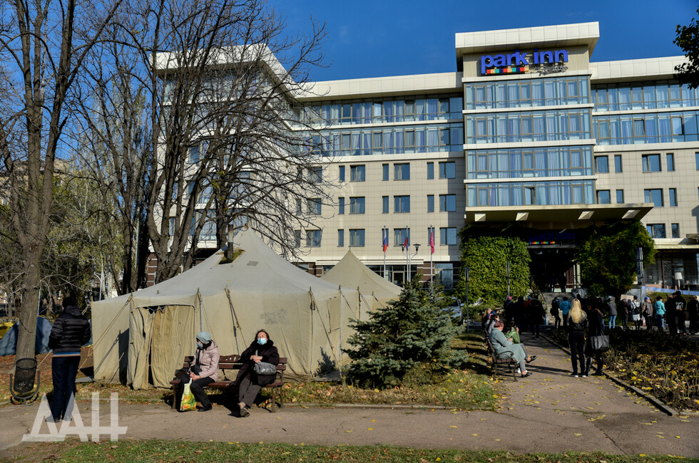 Донецк, 16 окт - корр. ДАН. Палаточный городок появился под зданием гостиницы Park Inn в Донецке, где располагается офис СММ ОБСЕ. С утра пятницы там проходит акция протеста с требованием освободить захваченного украинскими силовиками сотрудника представительства ЛНР в СЦКК.