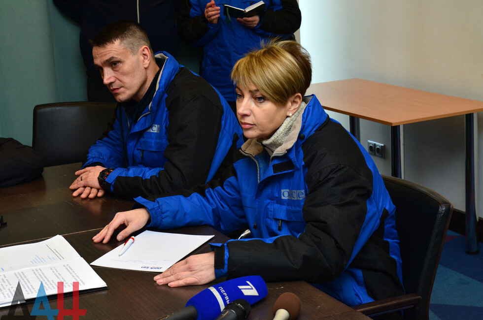 Ранее сегодня сообщалось, что жители Донецка собрались вблизи гостиницы «Park Inn» на бульваре Пушкина, где расположен офис мониторинговой миссии ОБСЕ, дабы выразить протест против неэффективной работы наблюдателей, в частности Александра Хуга, на Донбассе. Участники принесли с собой плакаты с надписями «ОБСЕ, открой глаза», «Хуг – агент Киева», «Хуг, скажи правду». Спустя некоторое время представители миссии вышли к протестующим, и сообщили им, что все пожелания жителей они передадут своему руководству. После чего, участники акции убедили наблюдателей поехать в поселек Трудовские Петровского района Донецка, где в ночь с 25 на 26 января украинскими обстрелами было повреждены двадцать домов, факт чего не был отражен в отчете ОБСЕ. *ха*рб