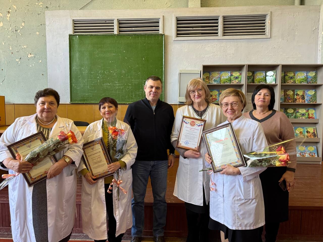 Благодарности Правительства ДНР получили Светлана Поликарпова — детский врач-эндокринолог, Ольга Кехиопуло — заведующая инфекционным отделением и Елена Гриневич — заведующая психоневрологическим отделением, которые работают в больнице со дня основания в 1976 году.
