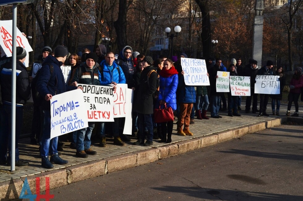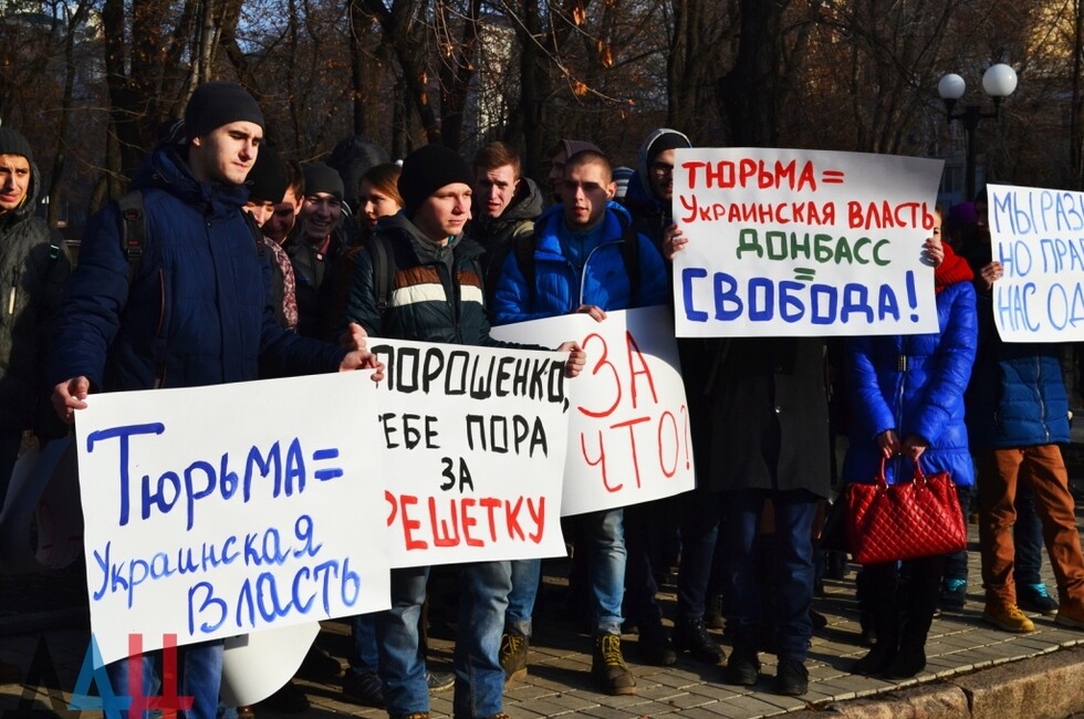 Донецк, 10 дек – корр. ДАН. Митинг «Услышьте голос Донбасса» собрал сегодня в центре столицы ДНР около 100 человек, преимущественно из числа студентов донецких вузов. Акция протеста против дискриминации прав и свобод граждан Республики организована по случаю Международного дня защиты прав человека.