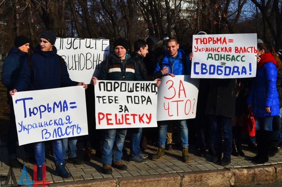 На митинге напомнили о судьбе активиста «Молодой Республики» Виктора Назарова, которого сотрудники СБУ задержали во время его поездки на украинскую территорию. Представитель общественной организации выехал за пределы ДНР за тяжелобольной сестрой, однако был остановлен силовиками. Назарову предъявлено обвинение по ст. 258 УК Украины «Терроризм».