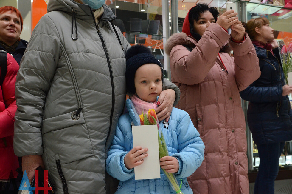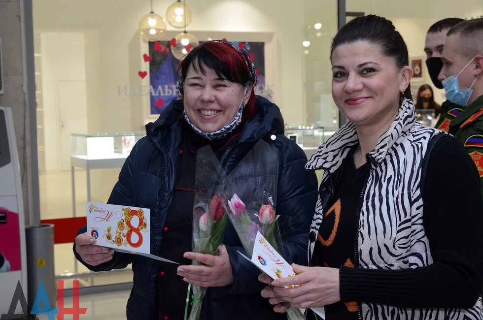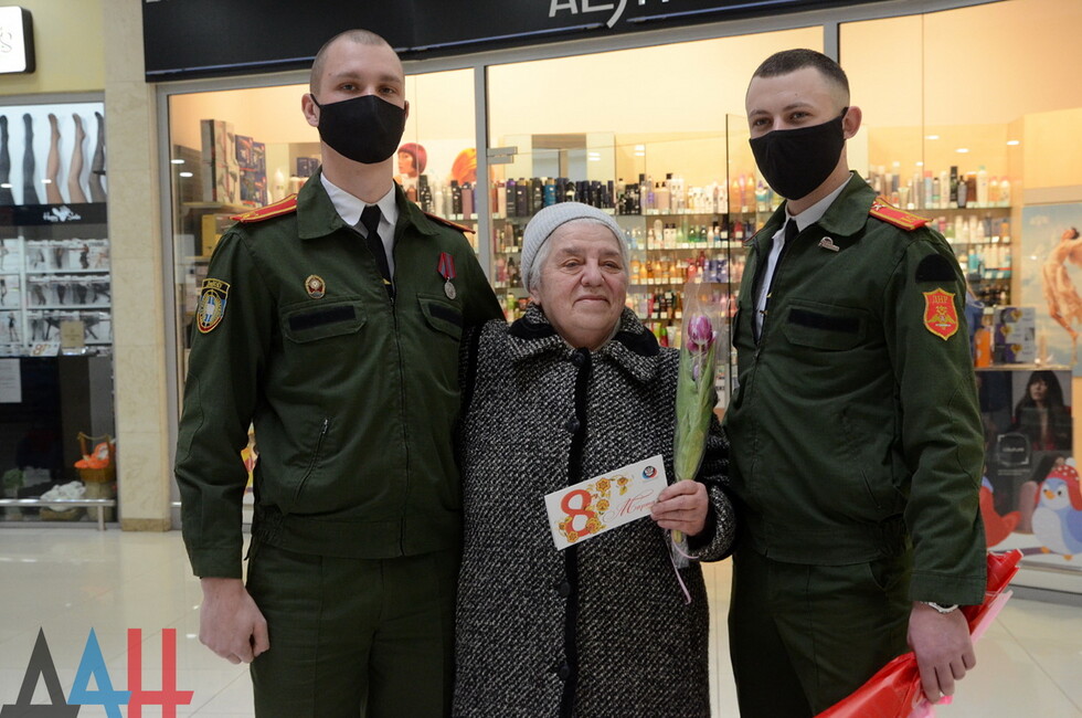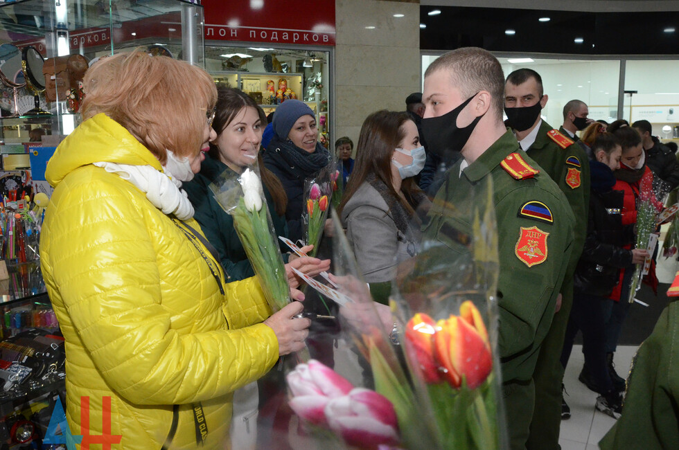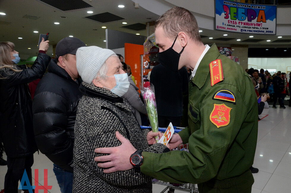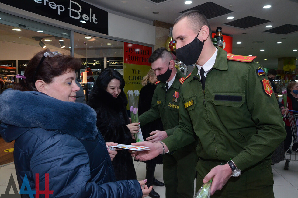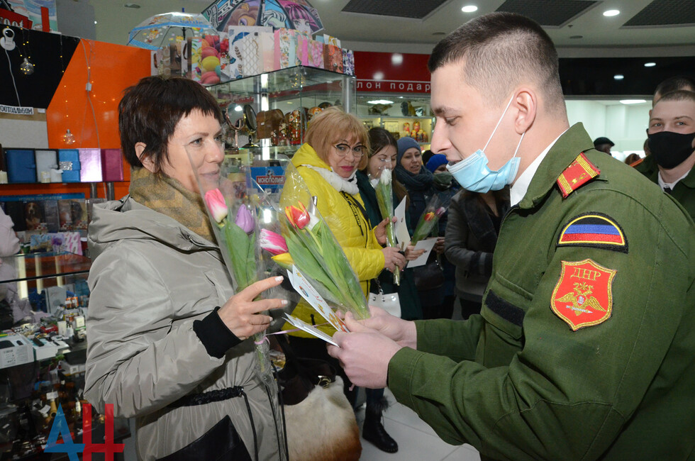 Донецк, 6 мар – корр. ДАН. Курсанты Донецкого высшего общевойскового командного училища песнями и цветами поздравили представительниц прекрасного пола с предстоящим Международным женским днем. Праздничное мероприятие прошло сегодня в торгово-развлекательном центре «Донецк Сити».