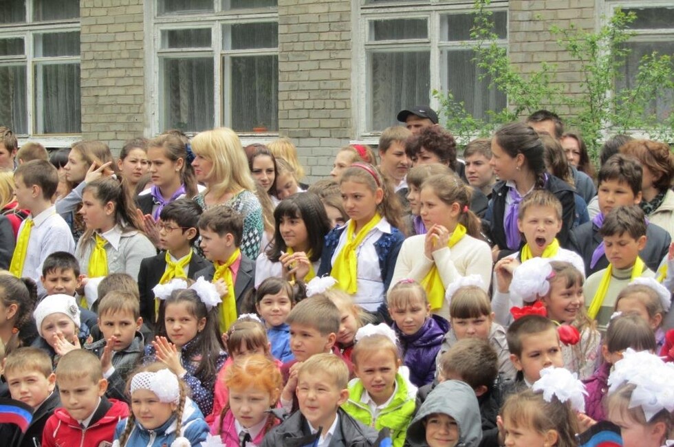 Директор школы, Ольга Авдеенко, с гордостью отмечает, что преподавательский состав за этот год не изменился, всего 3 человека покинуло Донецк, к тому же очень много детей уже вернулось из эвакуации, сейчас за партами сидят 500 школьников, до войны их было 630, и, уверена директор, вернутся еще много.