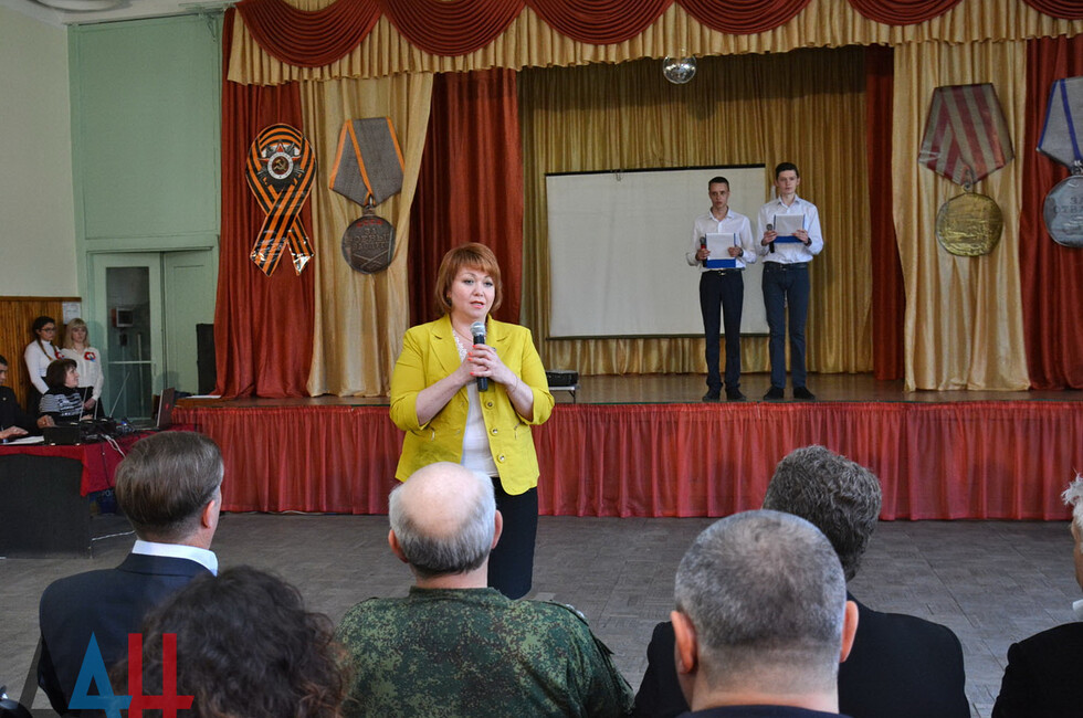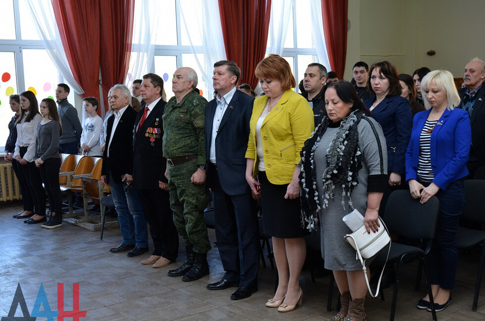 В качестве гостей были приглашены зампредседателя Народного Совета ДНР Ольга Макеева, член правления общественной организации «Оплот Донбасса», депутат Александр Куренков, глава районного союза ветеранов-афганцев Анатолий Белов, школьники, учителя, родители.