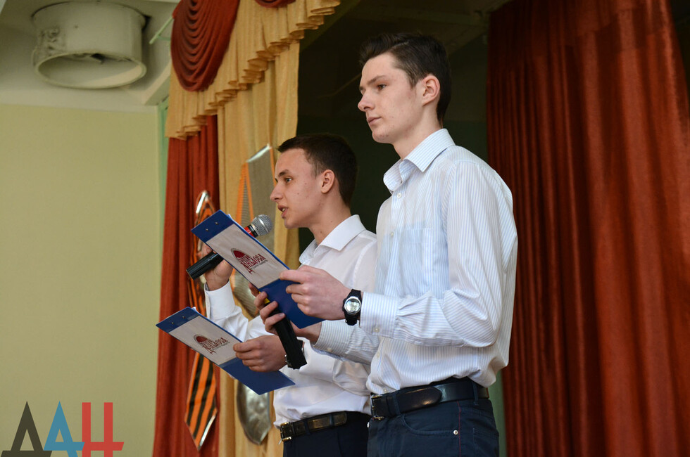 Донецк, 20 апр. – корр. ДАН. Патриотический час «Есть память, которой не будет конца» прошел сегодня в гимназии № 92 в Кировском районе Донецка. Мероприятие приурочено к предстоящей 72-й годовщине со Дня Великой Победы.