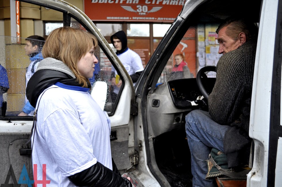 Участники акции раздавали водителям поздравительные листовки. За несколько часов студенты успели поздравить десятки шоферов. Мероприятие прошло при поддержке министерства транспорта Донецкой Народной Республики.