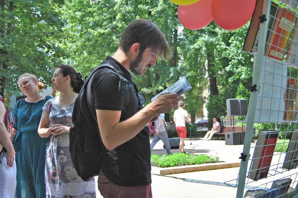 Несмотря на жару на бульваре Пушкина было многолюдно – около полусотни постоянных зрителей и прохожие, которые с большим интересом наблюдали за происходящим. Гостей развлекали участники театральных студий «Образ» и «Свет рампы». Стихи читали молодые писатели из Донецка.