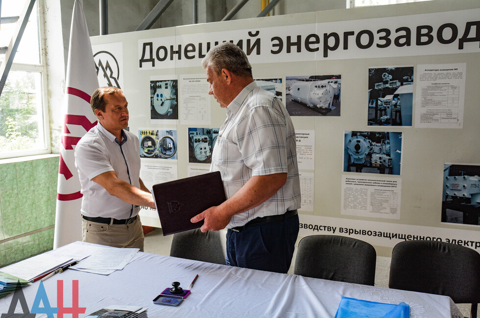 Сегодня на заводе побывали заместитель председателя Совета министров, министр доходов и сборов Александр Тимофеев, и.о. главы Минпромторга Алексей Грановский, главы администраций Новоазовска и Новоазовского района Александр Баландин и Анатолий Яновский. Для них была организована экскурсия: гости посетили цех, включающий аппаратный, трансформаторный, намоточный, испытательный, а также участки по сборке и покраске.