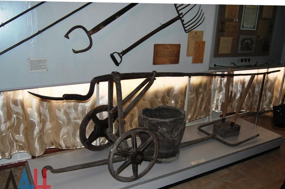 Общая площадь выставочного зала достигает 150 квадратных метров. Почетное место там занимают свидетельства строительства одного из старейших метзаводов – Юзовского, а также материалы о рабочих традициях трудового народа: алые ленты, нагрудные знаки и многое другое.