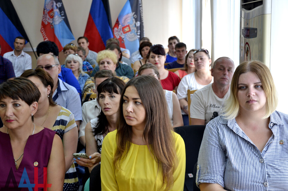 На мероприятии присутствовали: руководитель центрального исполкома общественного движения «Донецкая Республика», председатель Народного Совета ДНР Денис Пушилин, заместитель руководителя центрального исполкома движения Ольга Позднякова, депутаты парламента, а также коллектив Макеевского металлургического завода. Всего в зале собралось порядка 40 человек.