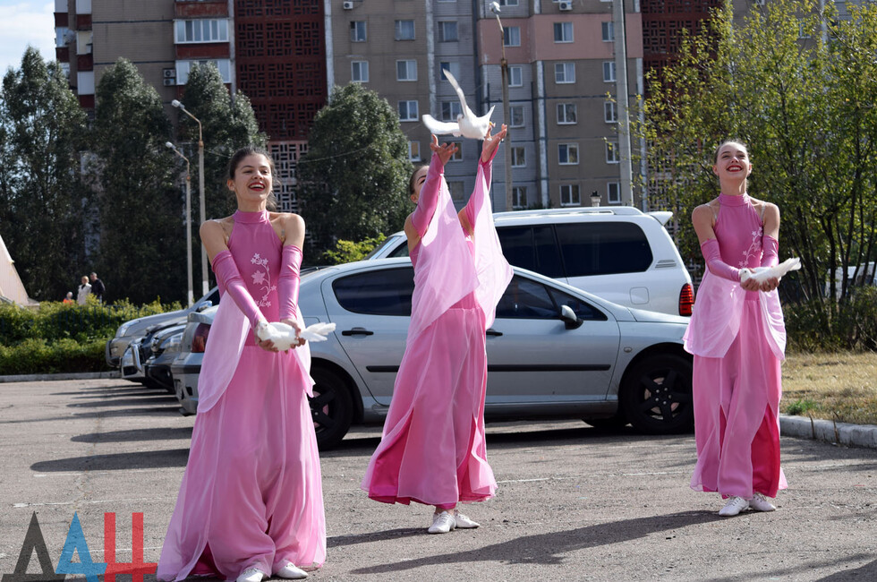 Перед собравшимися выступили юные артисты народного хореографического ансамбля столицы «Колибри». Затем дети выпустили в небо белых голубей, символизирующих мир. Следом была перерезана красная ленточка, и, таким образом, дворец торжественно открыл свои двери.