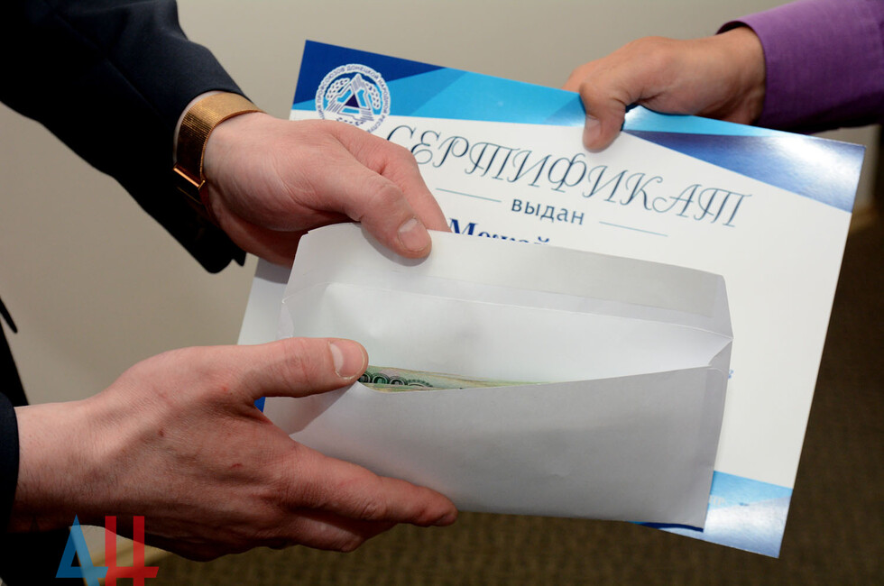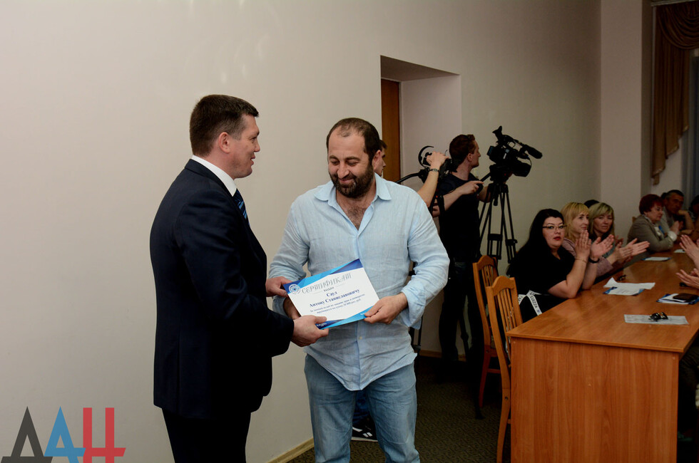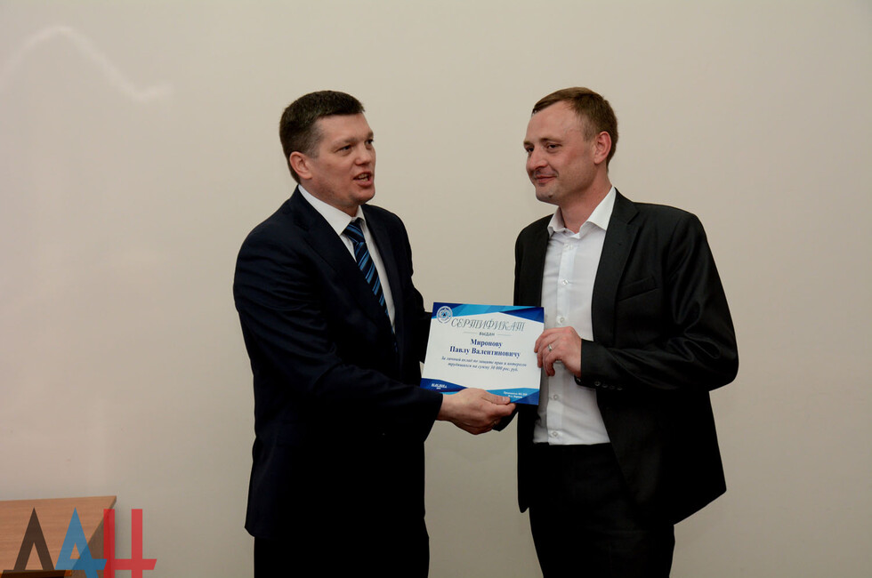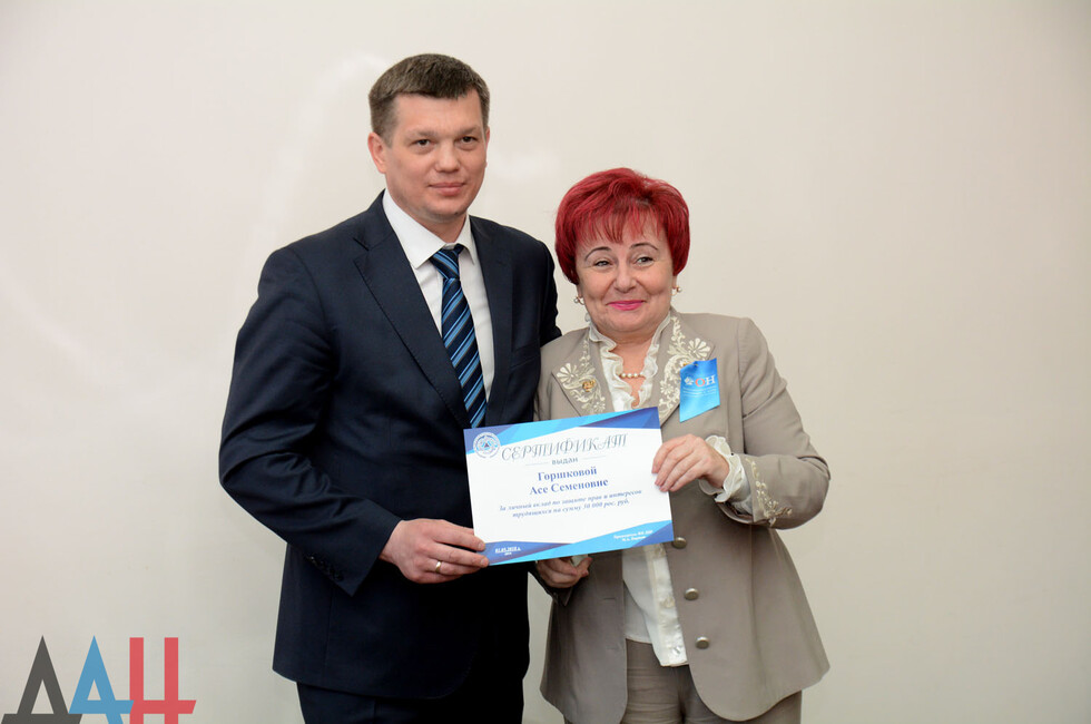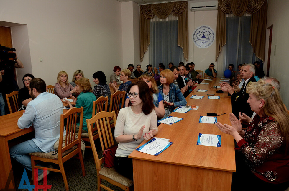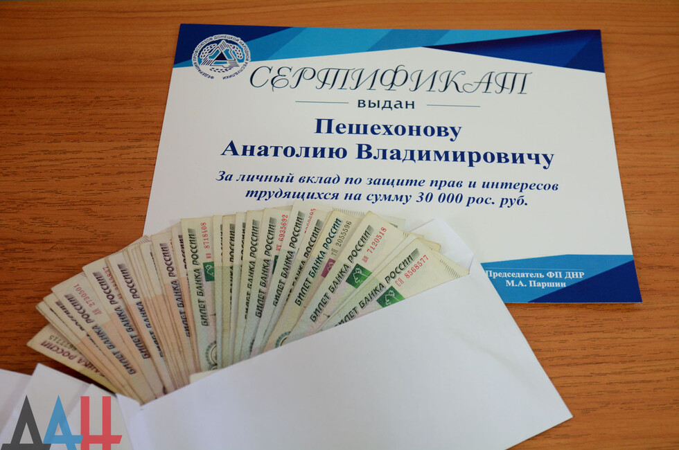 Донецк, 1 мая – ДАН. Профсоюзные активисты из ДНР и подконтрольных Киеву районов сегодня по случаю 1 мая получили денежные премии за достижения в защите прав трудящихся. Церемония прошла в здании Федерации профсоюзов Донецкой Народной Республики.