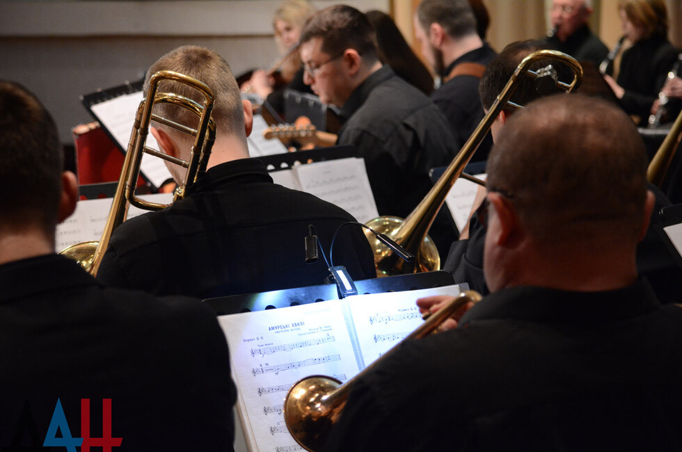 На торжественном открытии цикла мероприятий Года русского языка в ДНР музыкальные номера представил концертный оркестр духовых инструментов Донецкой государственной академической филармонии.