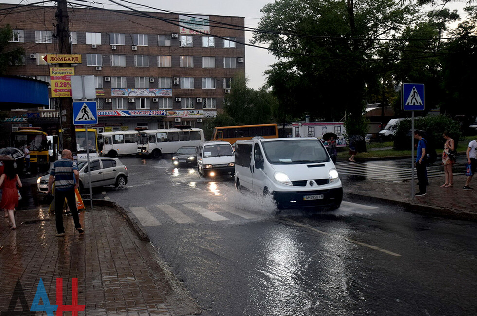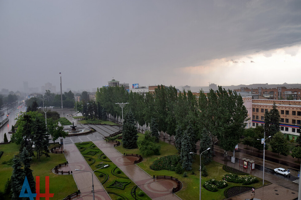 Донецк, 29 июн – ДАН. Сильная гроза прошла сегодня в столице ДНР. Ливень с громом и молниями начался около 15:30. По оценкам корр. ДАН, это первый в Республике случай непогоды таких масштабов с начала лета.