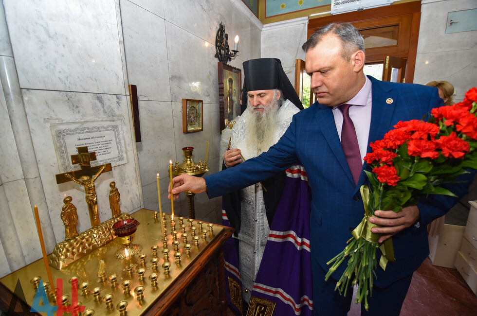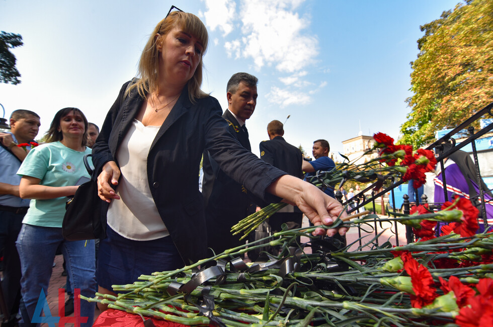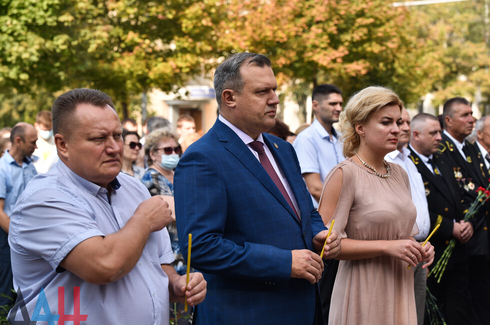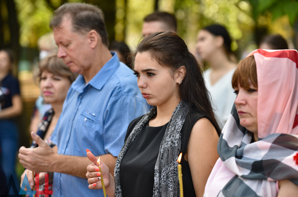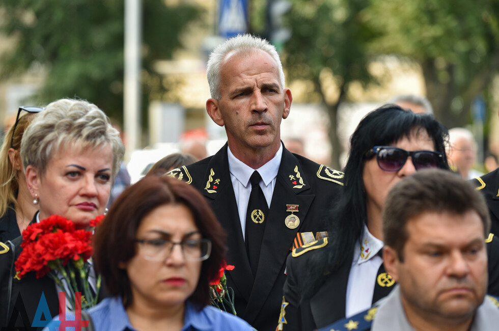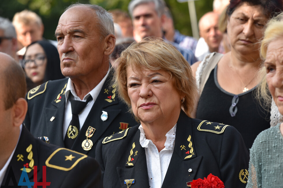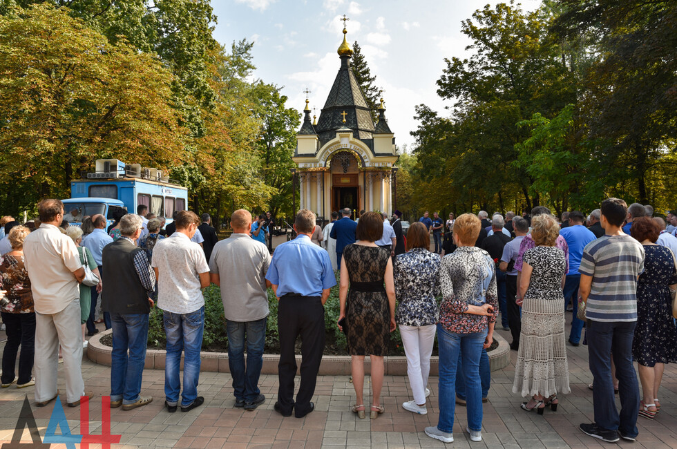 Почтить память погибших горняков пришли мэр Донецка Алексей Кулмезин, родственники погибших, друзья, сотрудники угледобывающих предприятий столицы и простые горожане. По оценке корр. ДАН, всего у часовни собрались порядка 100 человек.