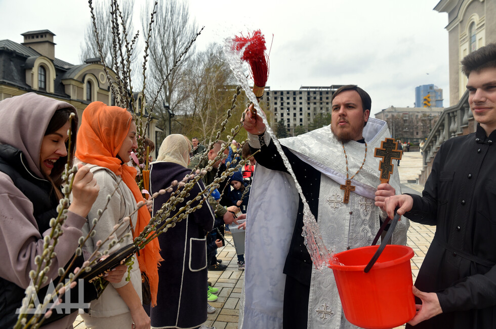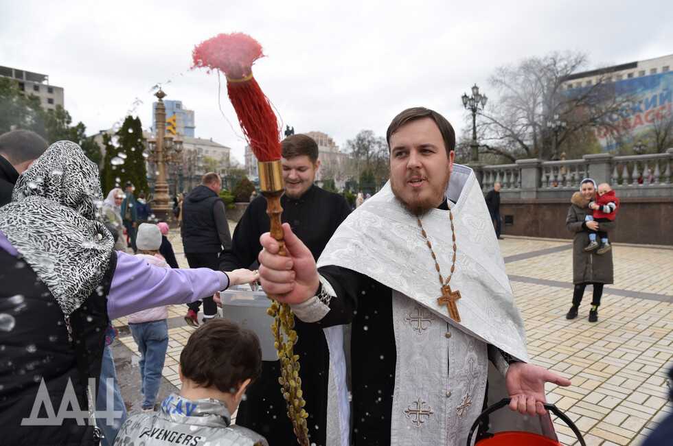 Несмотря на обстрелы, звуки которых доносятся с западных и северных окраин города, настроение у людей хорошее, чему благоприятствует и теплая весенняя погода – сейчас в Донецке +16 градусов, без осадков. Праздничные богослужения по случаю Входа Господнего в Иерусалим проходят по всей Республике.