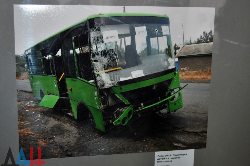 На фотографиях – как боевые действия, так и быт населения в условиях войны. В частности, семилетняя Евгения Антошенко из Шахтерска засняла эвакуацию детей из поселка Ольховчик летом 2014 года, фотограф из Донецка Геннадий Казаков сумел запечатлеть момент разрыва снаряда.