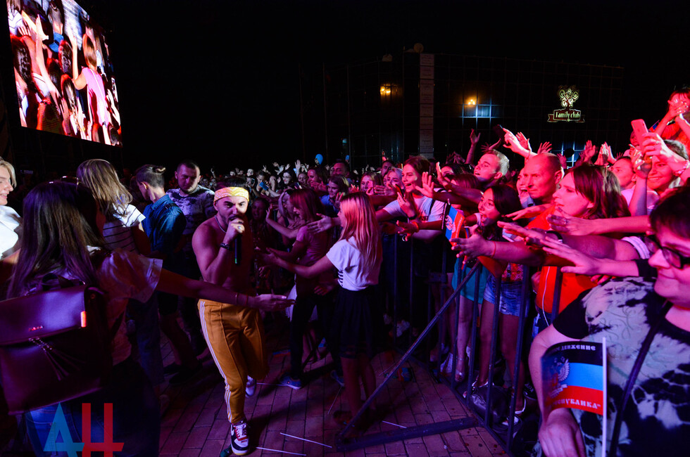 Артистка музыкального лейбла Black Star, певица и хип-хоп исполнительница Боронина первой из российских звезд поздравила дончан с праздником со сцены парка Щербакова. Затем свои хиты исполнил российский шоумен и певец Тимур Родригез. Зрители приветствовали артистов бурными овациями.