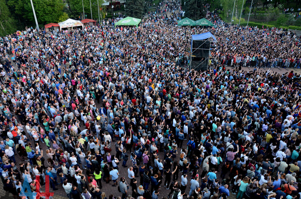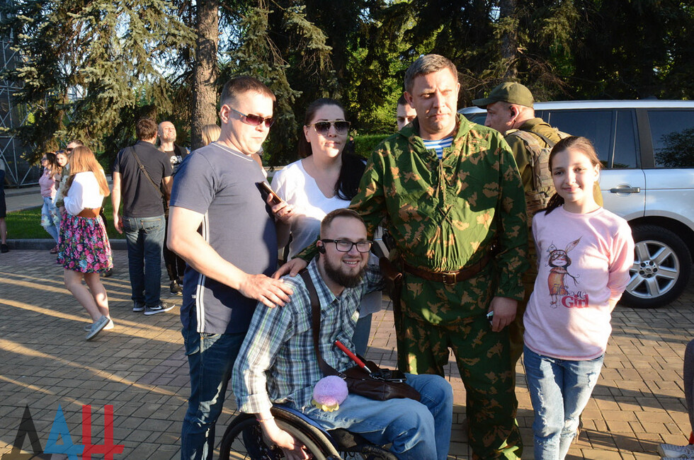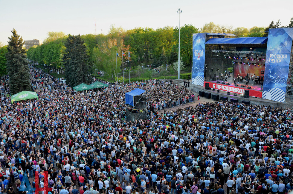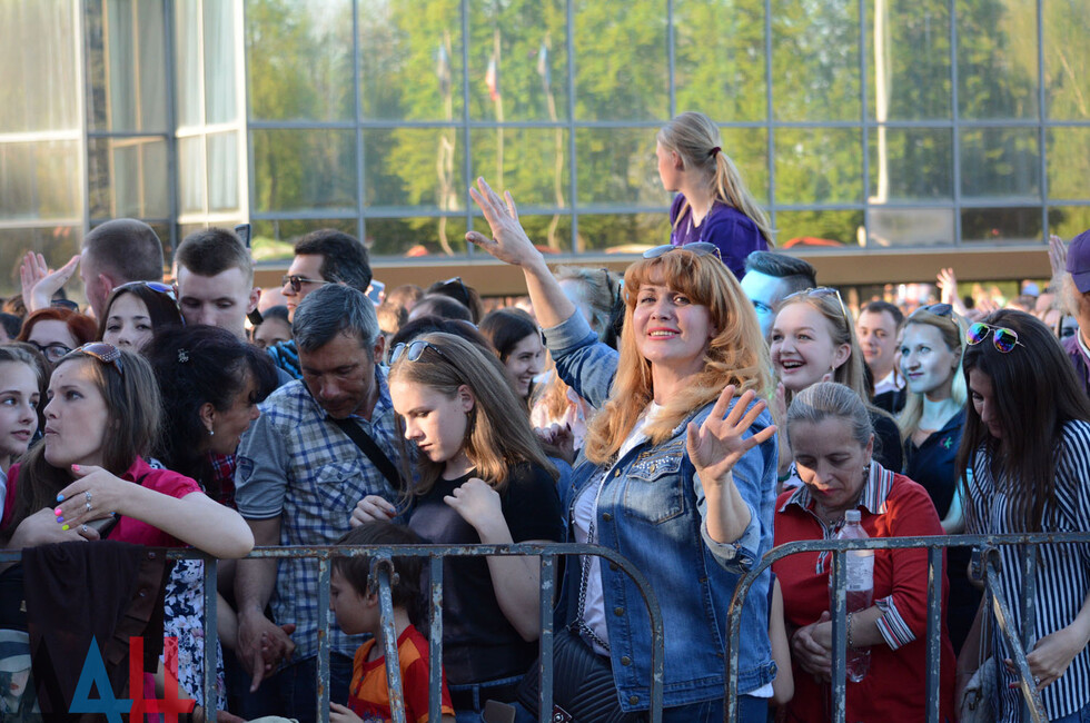 На сцене выступили музыкальные российские группы «Город 312» и «КВАТРО», Elvira Т. Мероприятие организовано при содействии Русского центра ДНР. Послушать исполнителей из РФ пришли более 10 тысяч человек. Среди них - Глава ДНР Александр Захарченко и председатель Народного Совета Денис Пушилин.