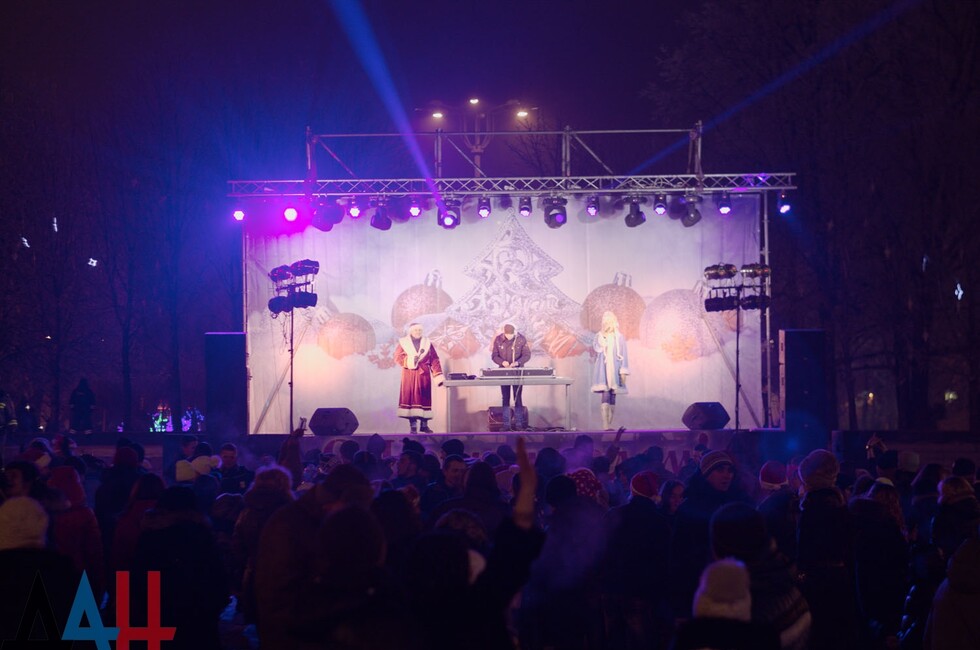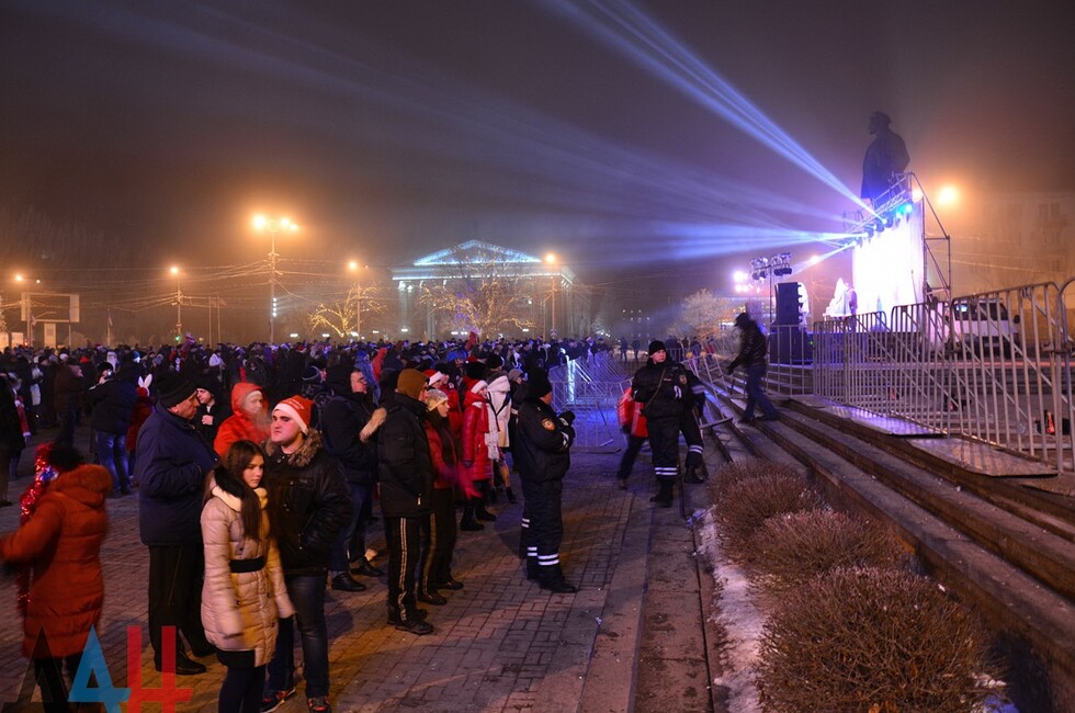 Донецк, 1 янв – ДАН. Около тысячи жителей и гостей столицы ДНР собралось в Донецке на центральной площади имени Ленина в канун Нового года, передает корр. ДАН с места события.
