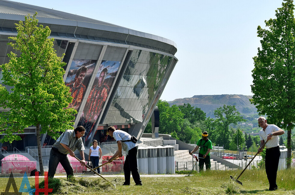 Донецк, 7 июн – корр. ДАН. Акция «Чистый парк» началась сегодня в столице Донецкой Народной Республики. Жители прифронтового Киевского района вышли на уборку зоны отдыха возле главной спортивной арены страны – стадиона «Донбасс Арена».