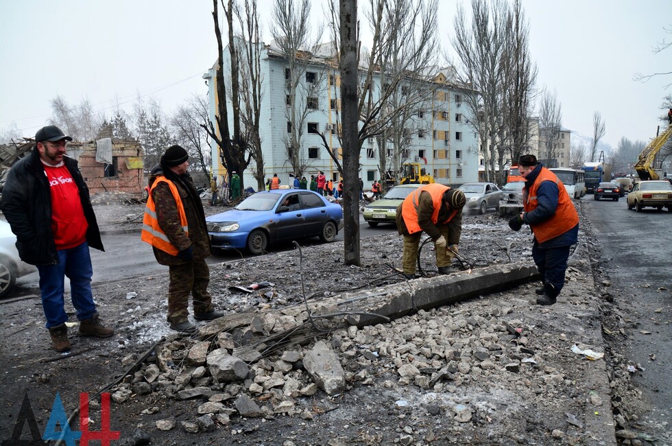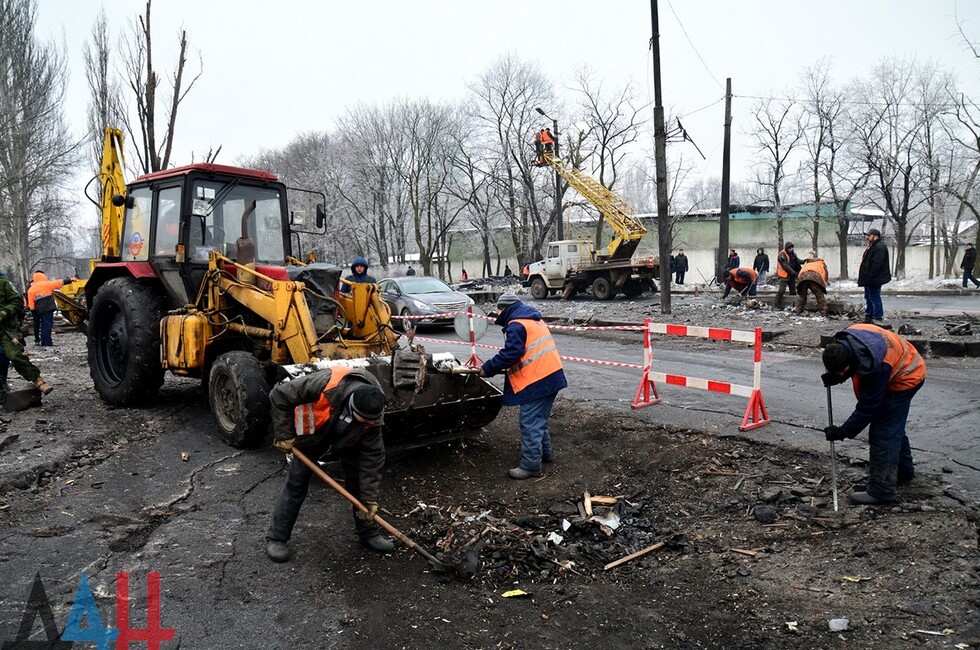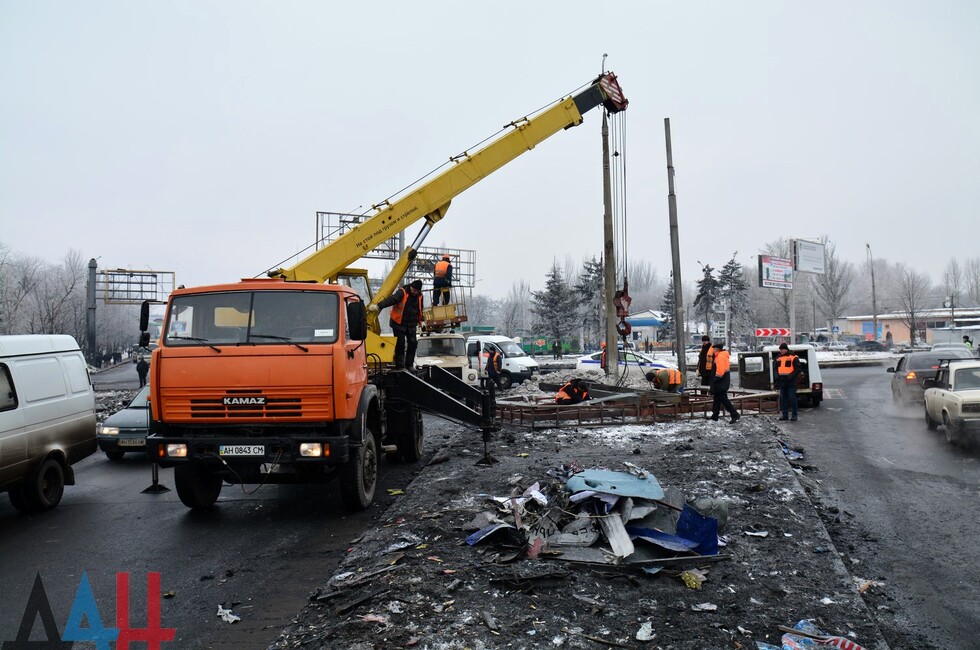 Сегодня в районе «Мотеля» об обстреле годичной давности напоминает только фундамент разрушенного магазина и траурный венок на одной из электроопор. Улицы оживлены, транспорт курсирует как в довоенный период. Некогда эпи-центр мощнейшего взрыва вновь превратился в важнейший транспортный узел, связывающий столицу с Макеевкой и другими городами востока страны. *нм*мк*дя