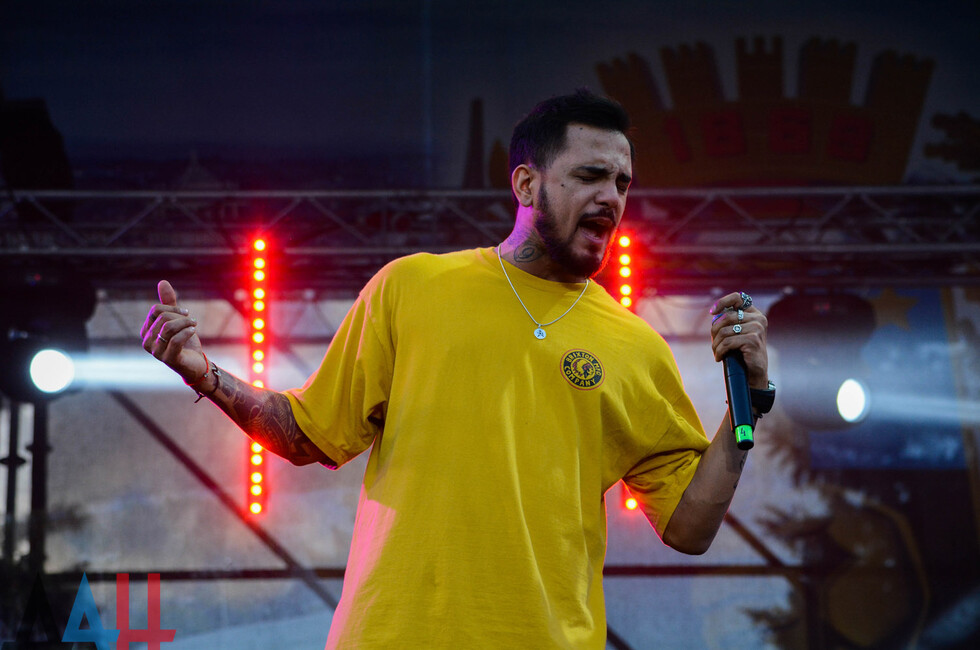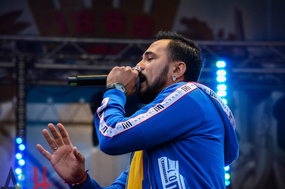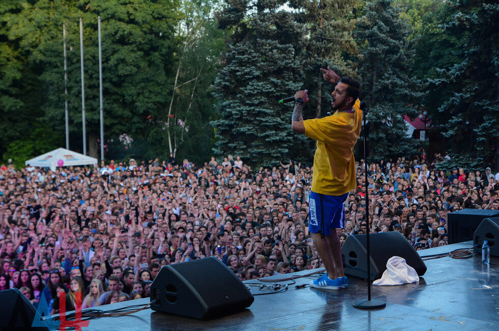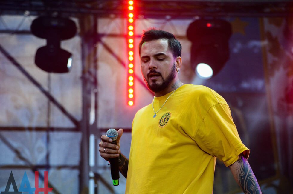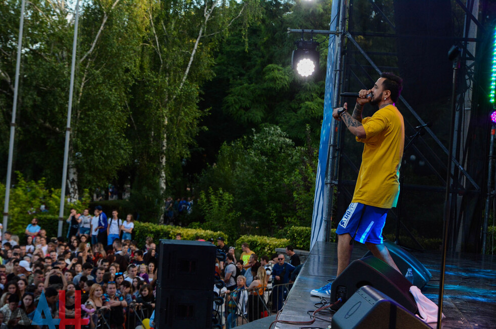 Затем на сцену вышел Natan. Донецк буквально взорвался овациями. Рэпер исполнил песни «Напомни имя», «Я хочу быть с ней», «Девочка Бомба» и один из самых популярных своих хитов «Слышь, ты че такая дерзкая?». Люди подпевали артисту. В концовке он сделал со сцены селфи со зрителями.