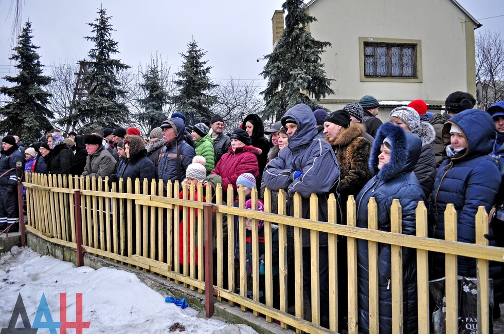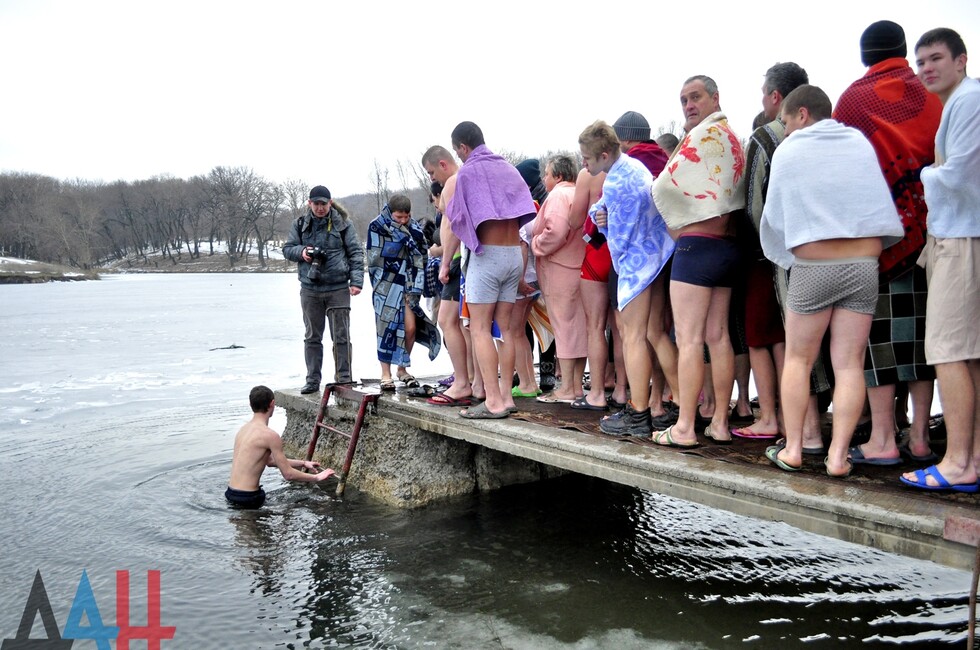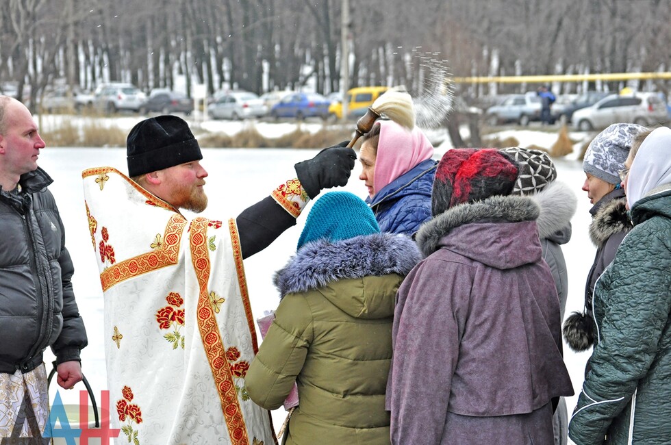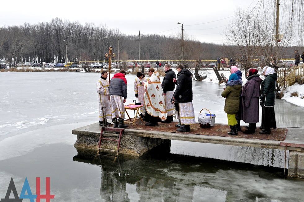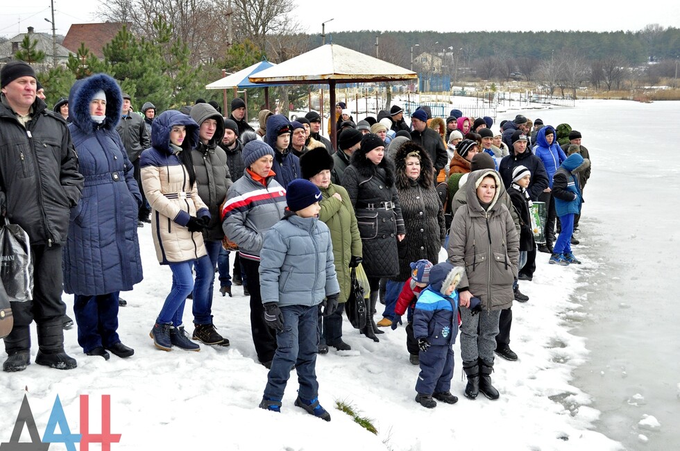 У подготовленной купели священнослужители из макеевского Свято-Введенского храма провели обряд освещения воды, после чего отец Андрей окропил водой присутствующих и поздравил их с Крещением. По окончанию традиционного обряда в иордань смогли окунуться все желающие, в результате чего образовалась длинная очередь. Вблизи водоема были расположены пункты переодевания и обогрева, где всех желающих угощали горячим чаем. Возле купели были организованы дежурства сотрудников МЧС ДНР, полиции и бригады скорой медицинской помощи.