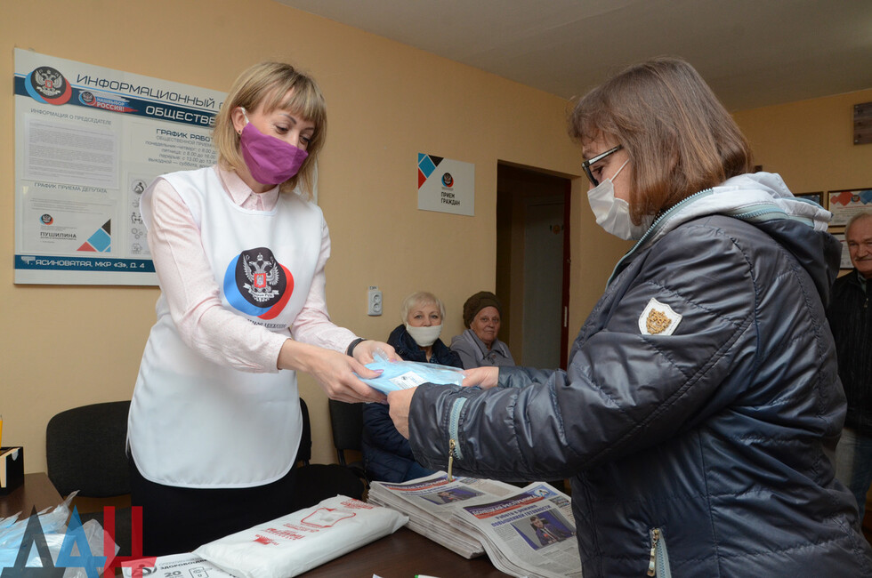 Донецк, 10 апр – корр. ДАН. Жители Ясиноватой и близлежащих населенных пунктов сегодня получили помощь от штаба по работе с прифронтовыми районами общественного движения «Донецкая Республика». Для нужд населения передано 20 наборов медикаментов, 1500 медицинских масок и 30 литров антисептического средства. Заявки поступили в приемные председателя движения, Главы ДНР Дениса Пушилина и в местные отделения ОД «ДР». *зх*мк