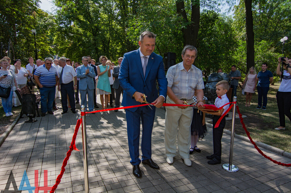 Памятник открыли глава администрации Донецка Алексей Кулемзин и заместитель председателя правления общественной организации «Землячество Донбассовцев» Москвы Петр Акаемов.