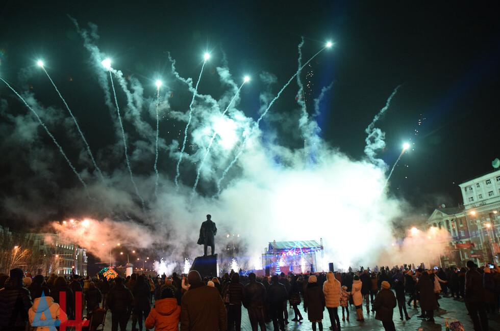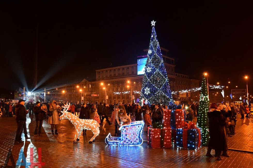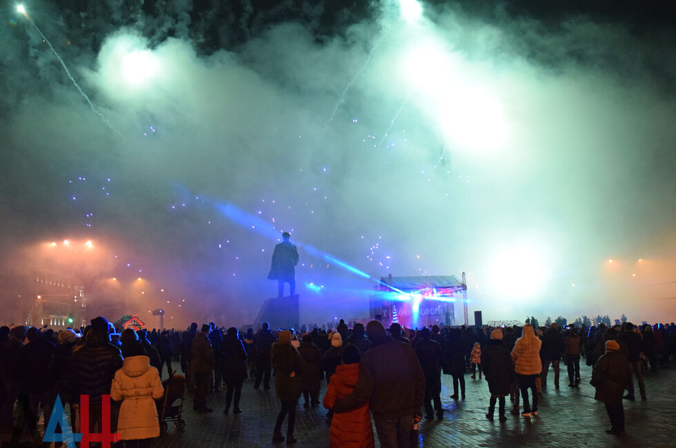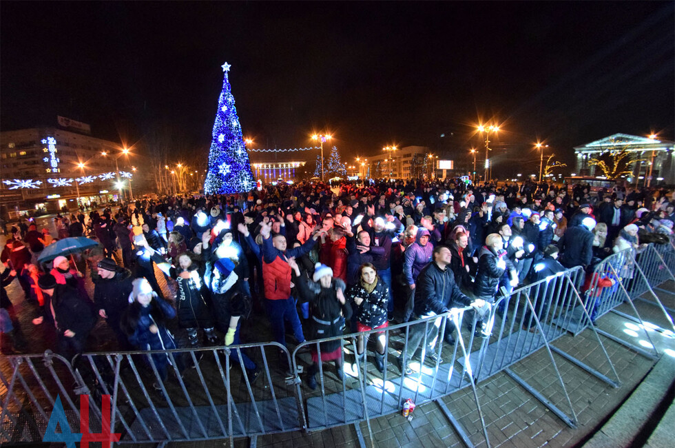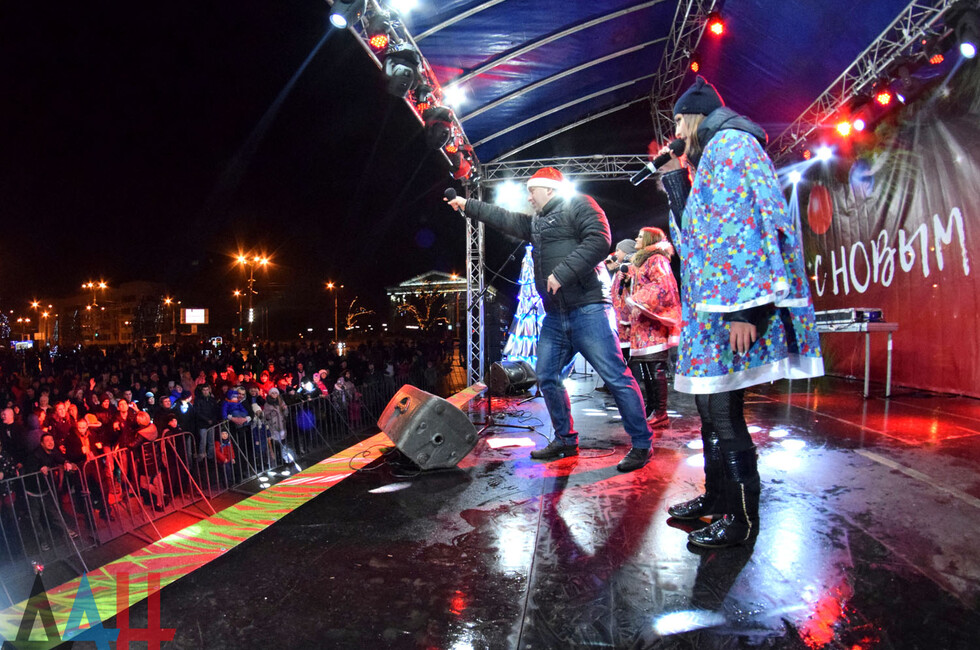 Донецк, 31 дек – корр. ДАН. Праздничный концерт прошел сегодня у главной елки ДНР в центре столицы Республики. В канун Нового Года, несмотря на дождь, по оценке корр. ДАН, на площади имени Ленина собралось несколько тысяч человек.