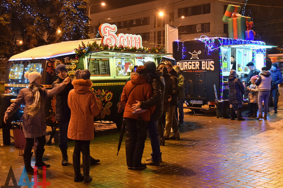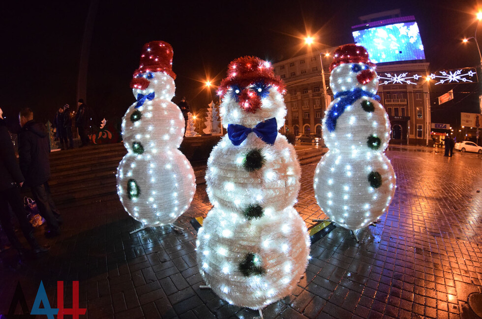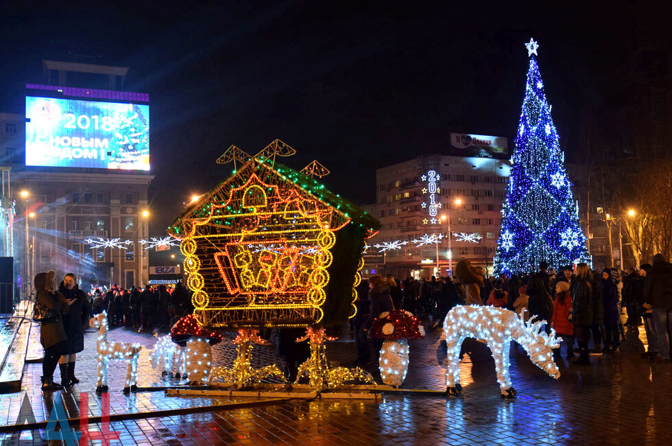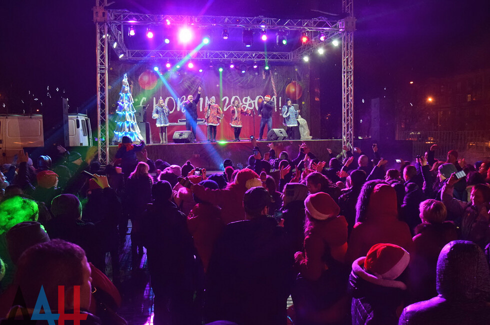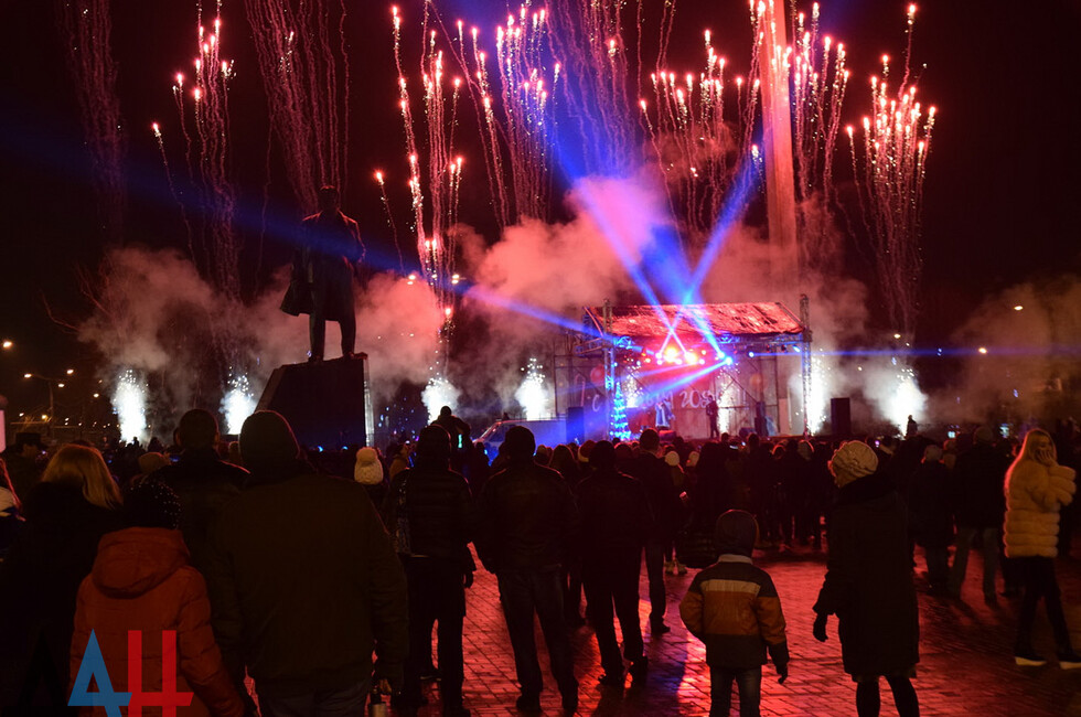 Донецк, 31 дек – корр. ДАН. Праздничный концерт прошел сегодня у главной елки ДНР в центре столицы Республики. В канун Нового Года, несмотря на дождь, по оценке корр. ДАН, на площади имени Ленина собралось несколько тысяч человек.